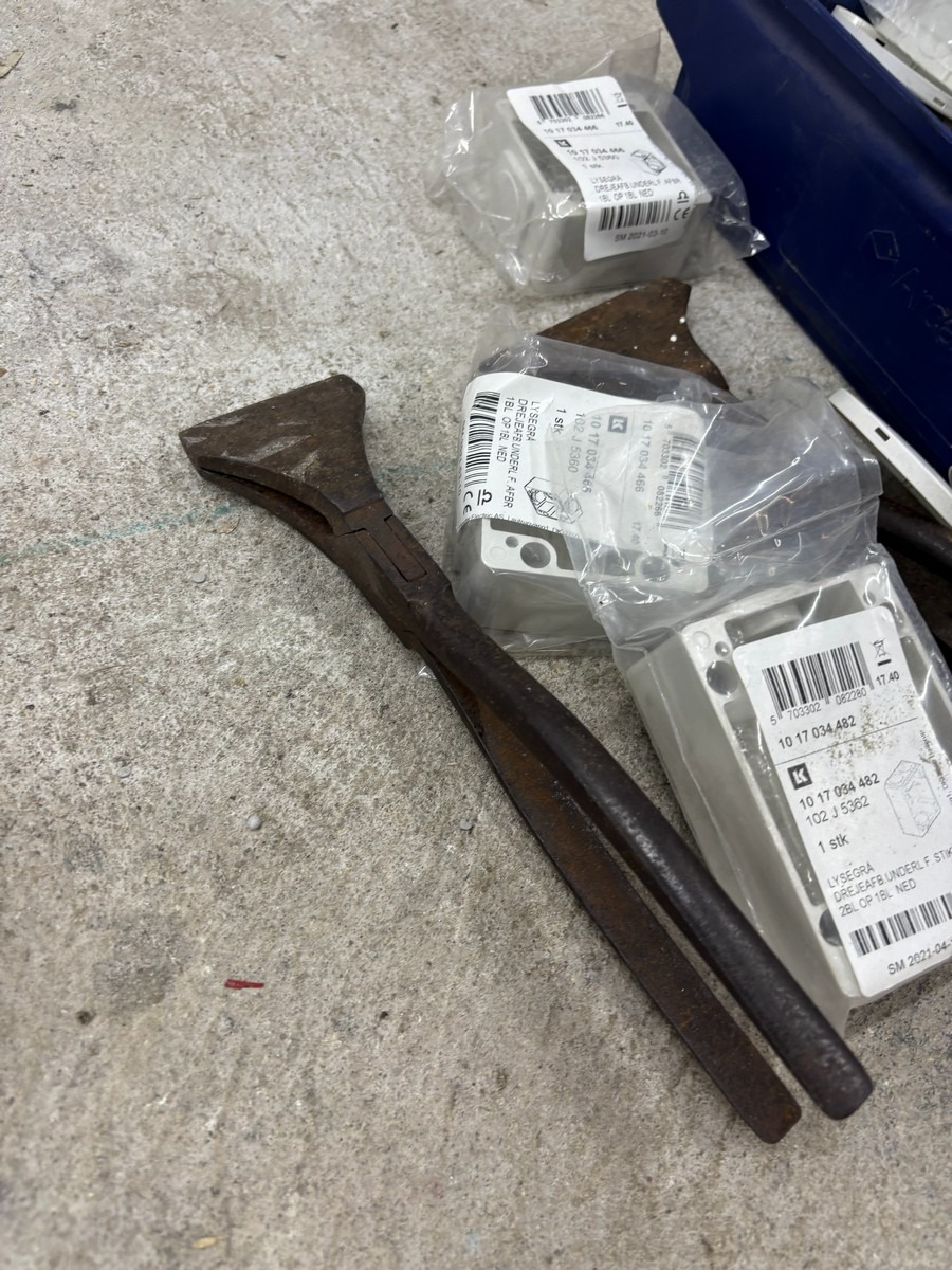 Kasse med byggematerialer - stikdåser, afbryder mm.
