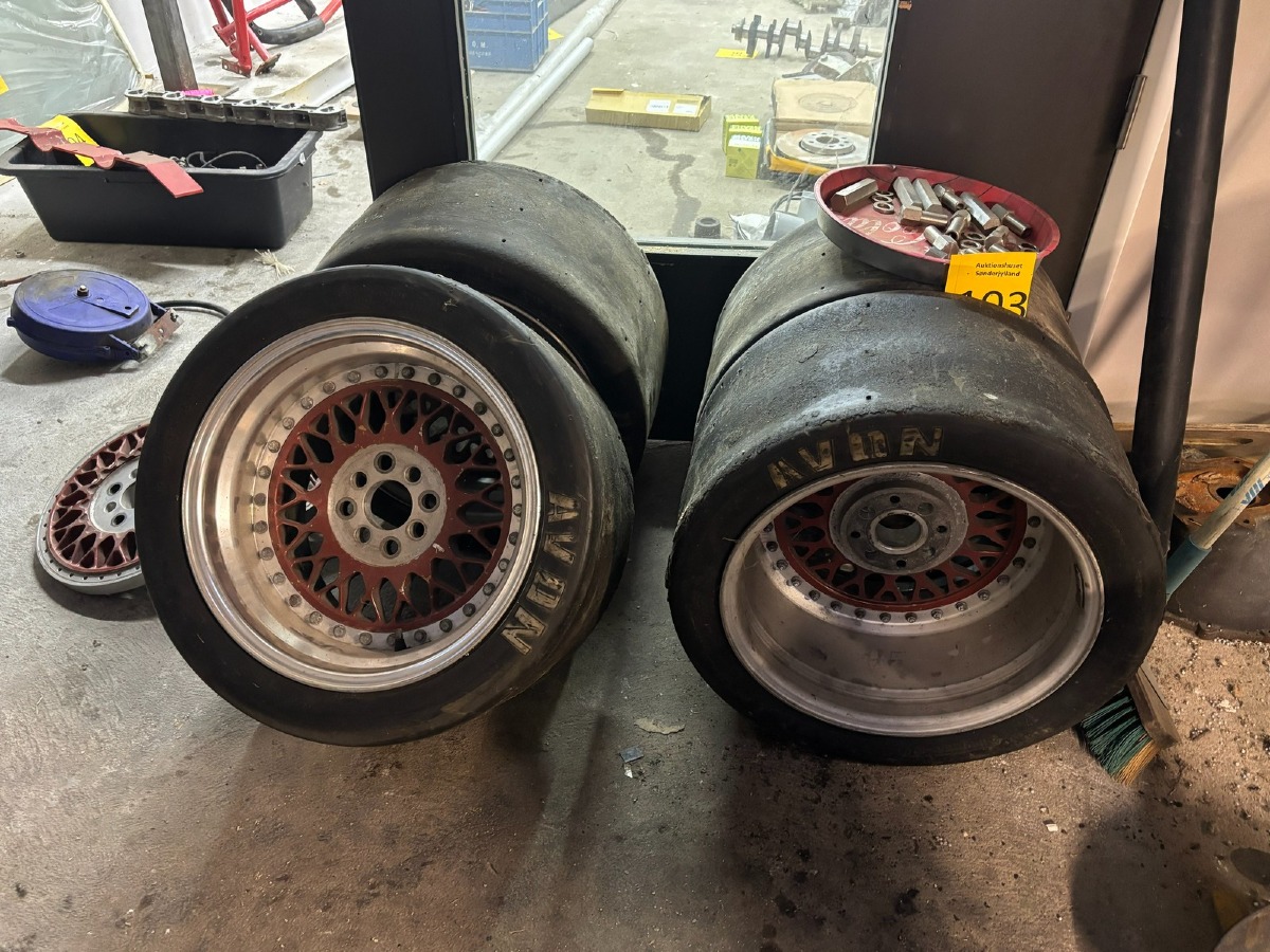 4 stk. alu. fælge med dæk. 16 tommer. Bredde: 11 tommer. (11 x 16). 4 x 100 og 4 x 108 mm. Med enkelte bolte. 2 stk. ekstra stjerner. Brugt, fra dødsbo.