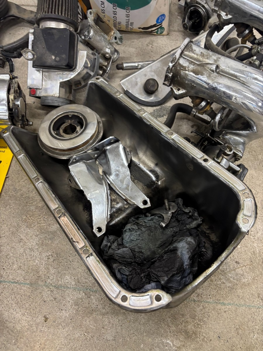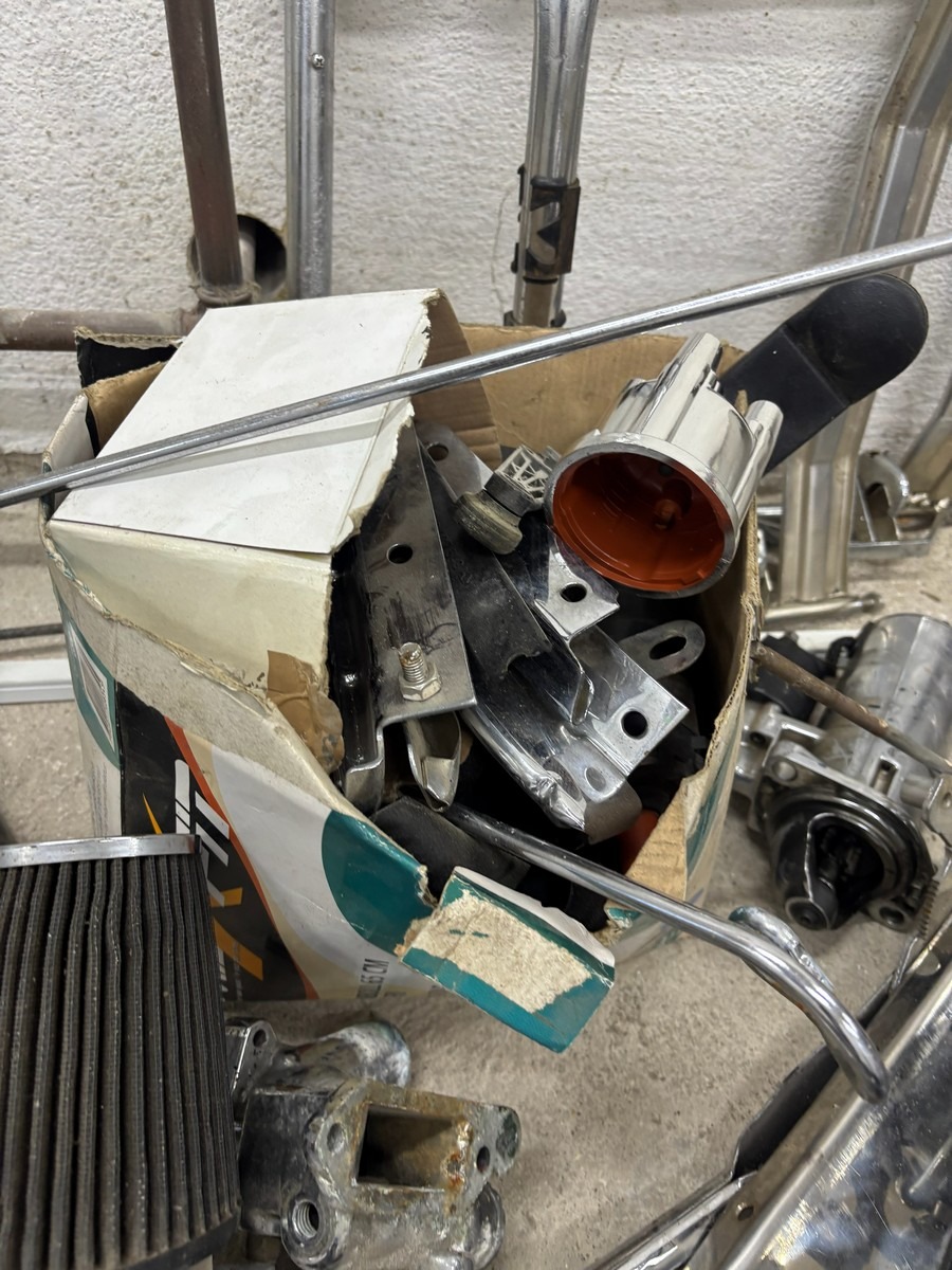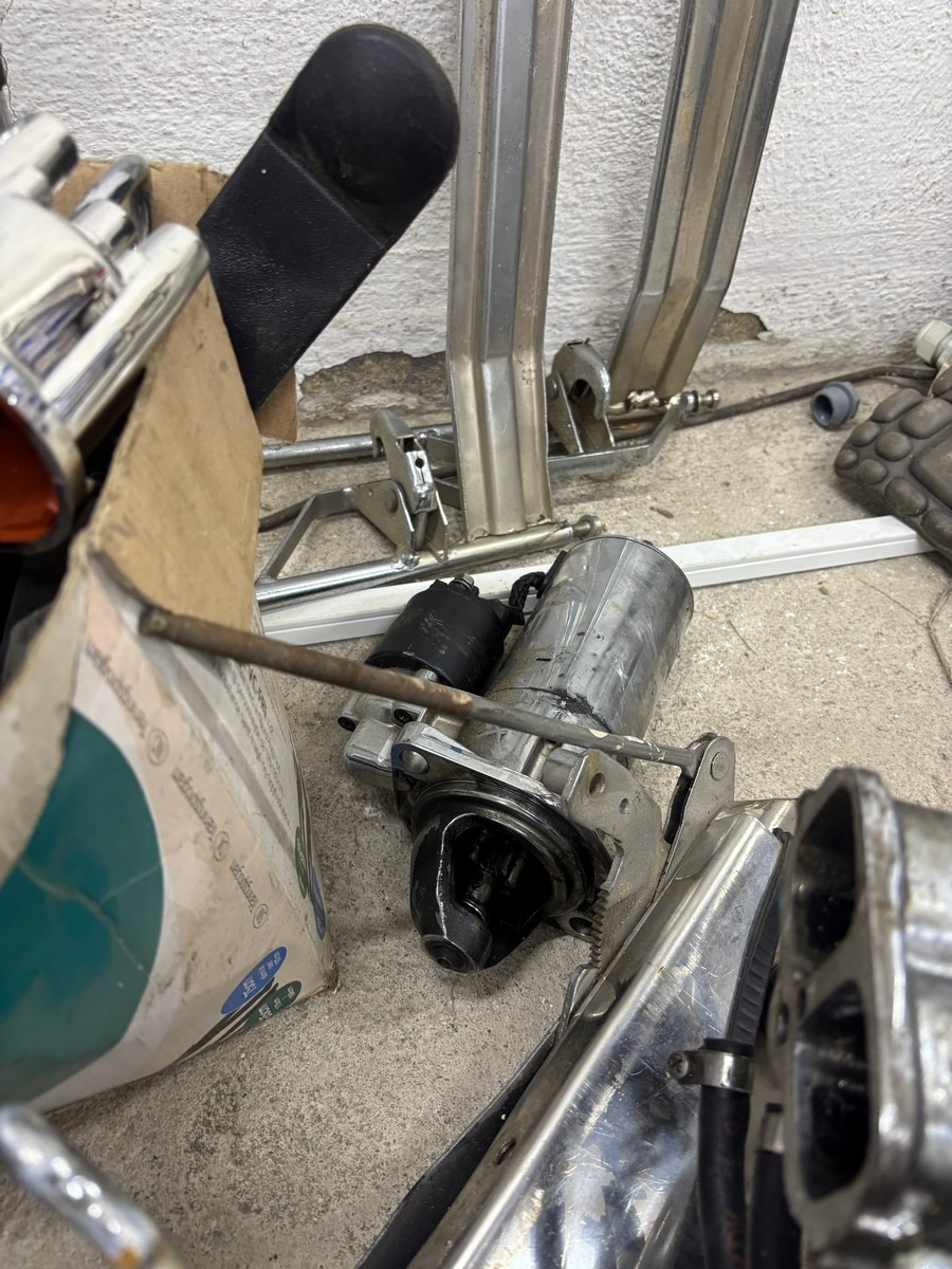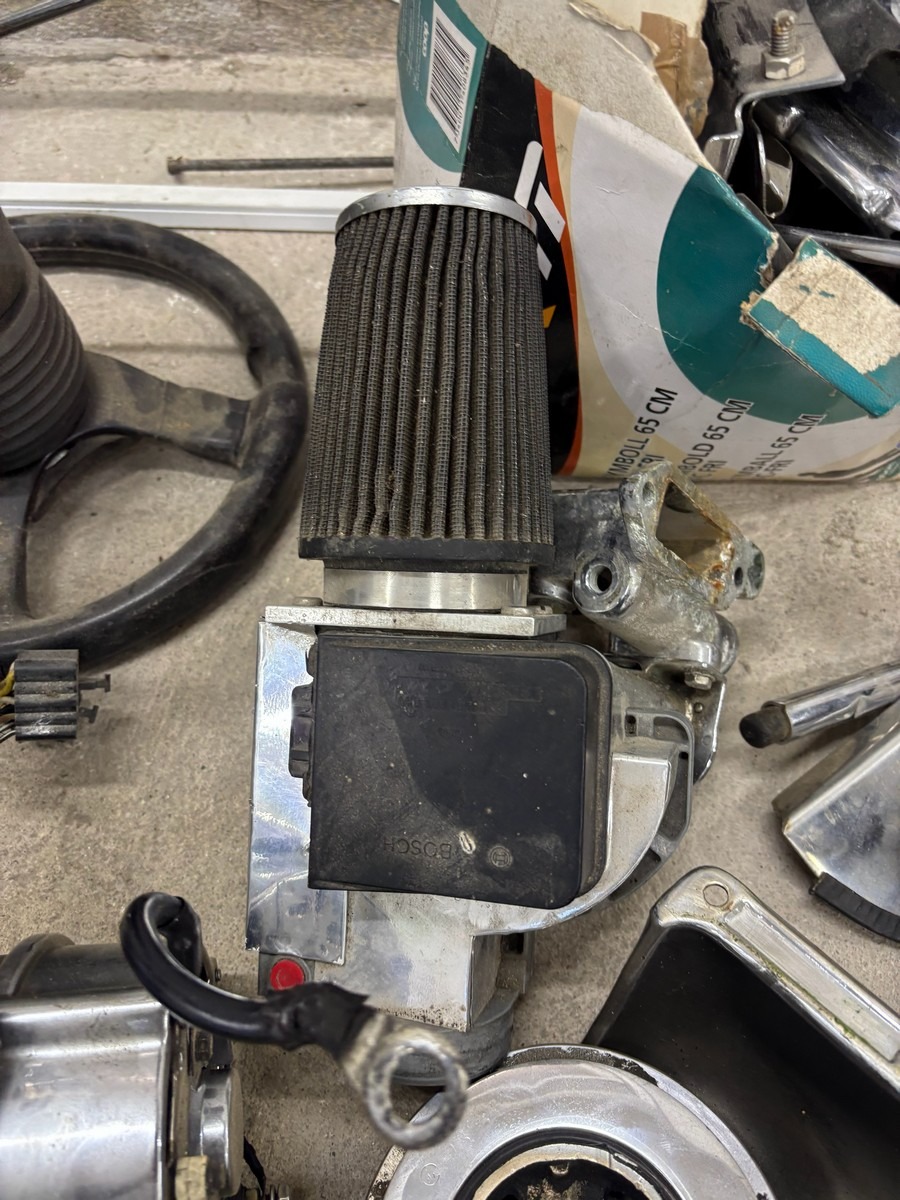 Diverse krom motordele, sædekonsol mm. til Kadett C. Brugt, fra dødsbo.