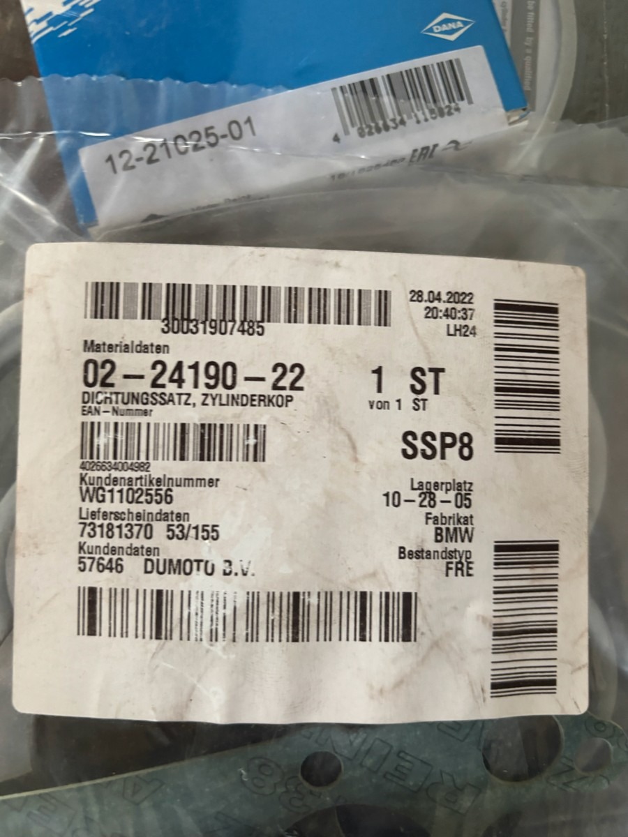 2 stk pakningsæt, BMW. Nyt. Fra dødsbo