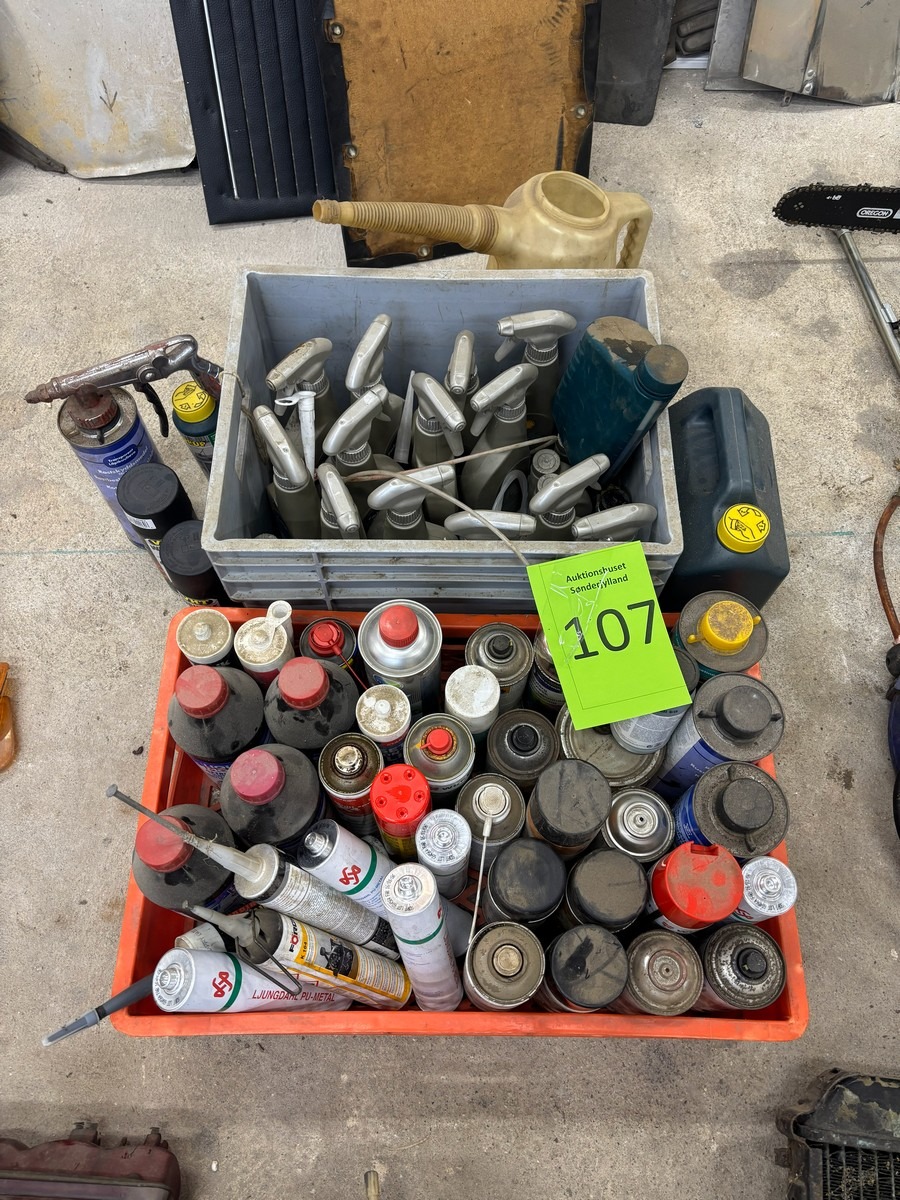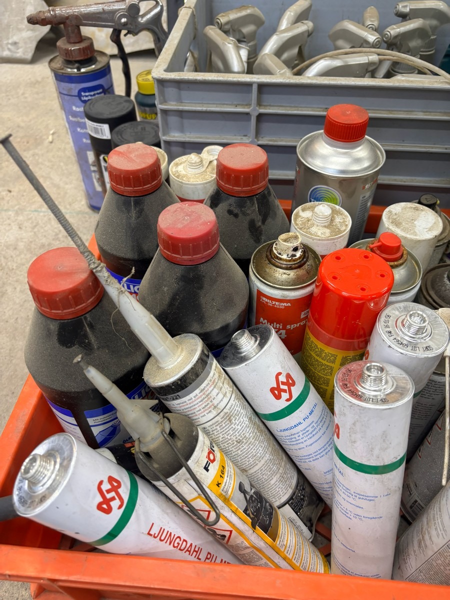 Parti rens. rengøringmidler, spraj, dunker, mm. Mange af dem er ubrugte.