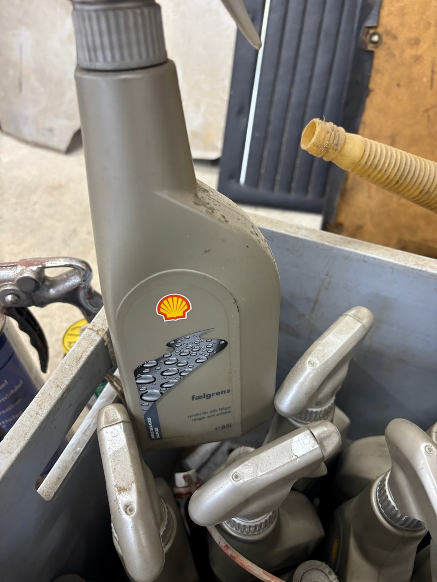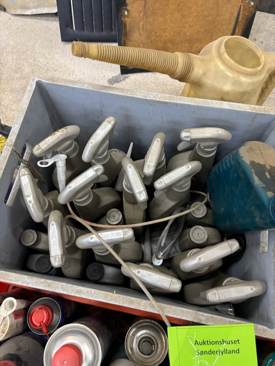Parti rens. rengøringmidler, spraj, dunker, mm. Mange af dem er ubrugte.. Fra dødsbo