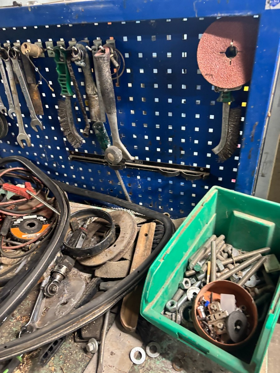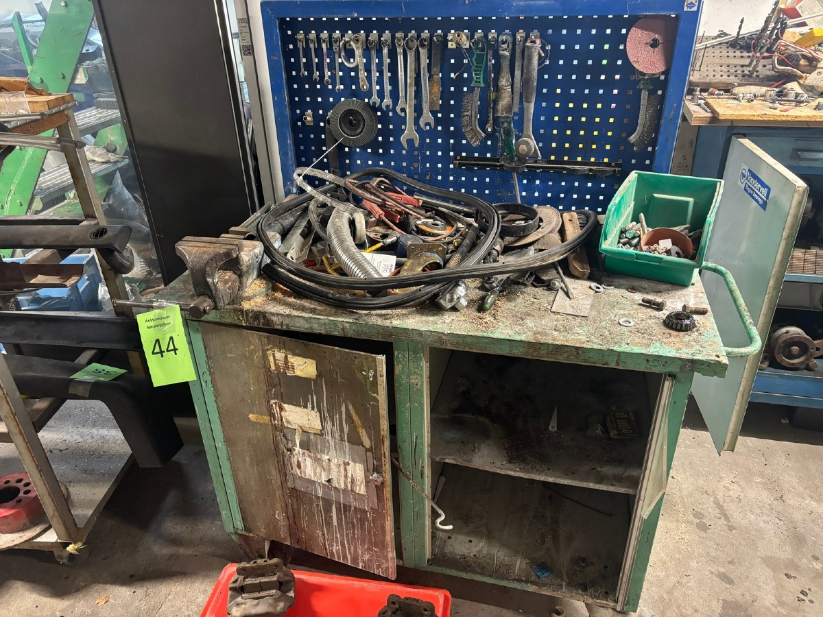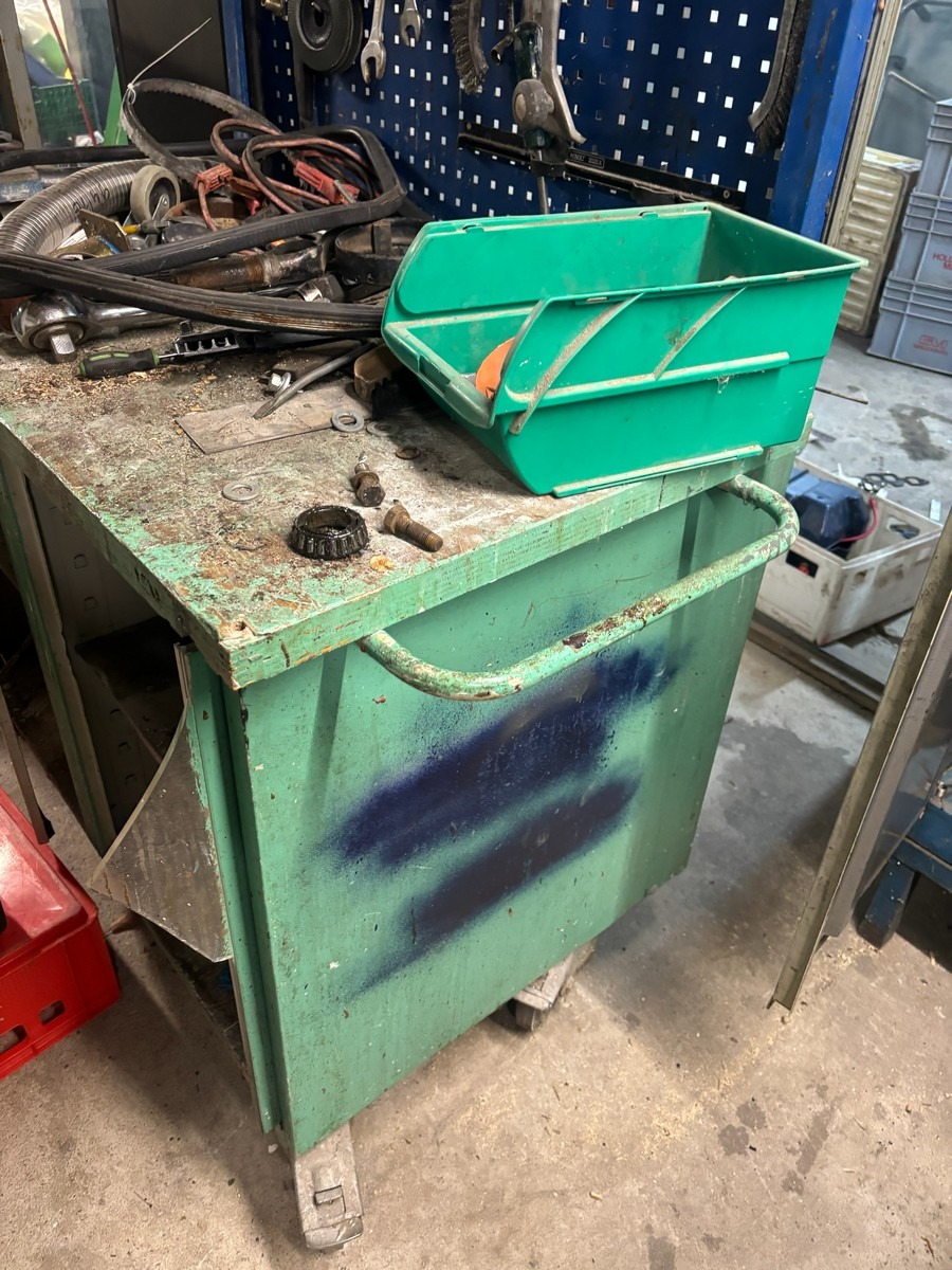 Værkstedsbord på hjul med indhold. Fra dødsbo