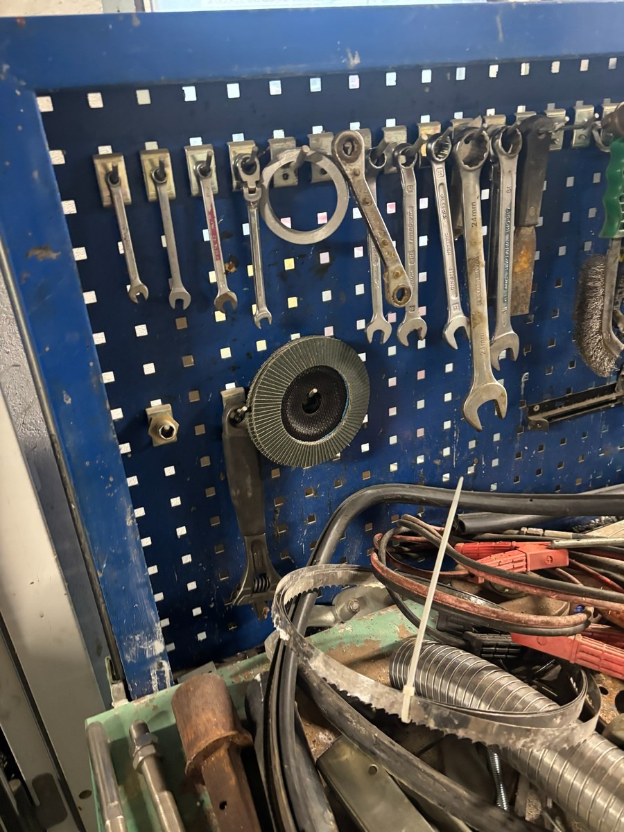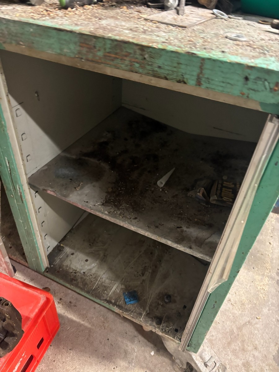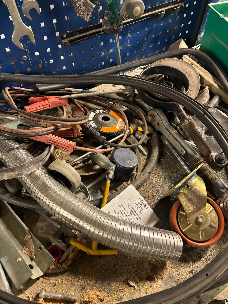 Værkstedsbord på hjul med indhold. Fra dødsbo