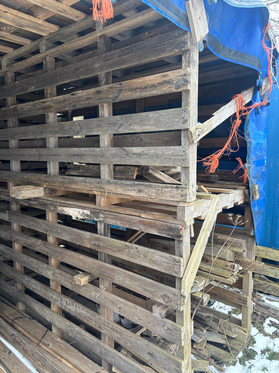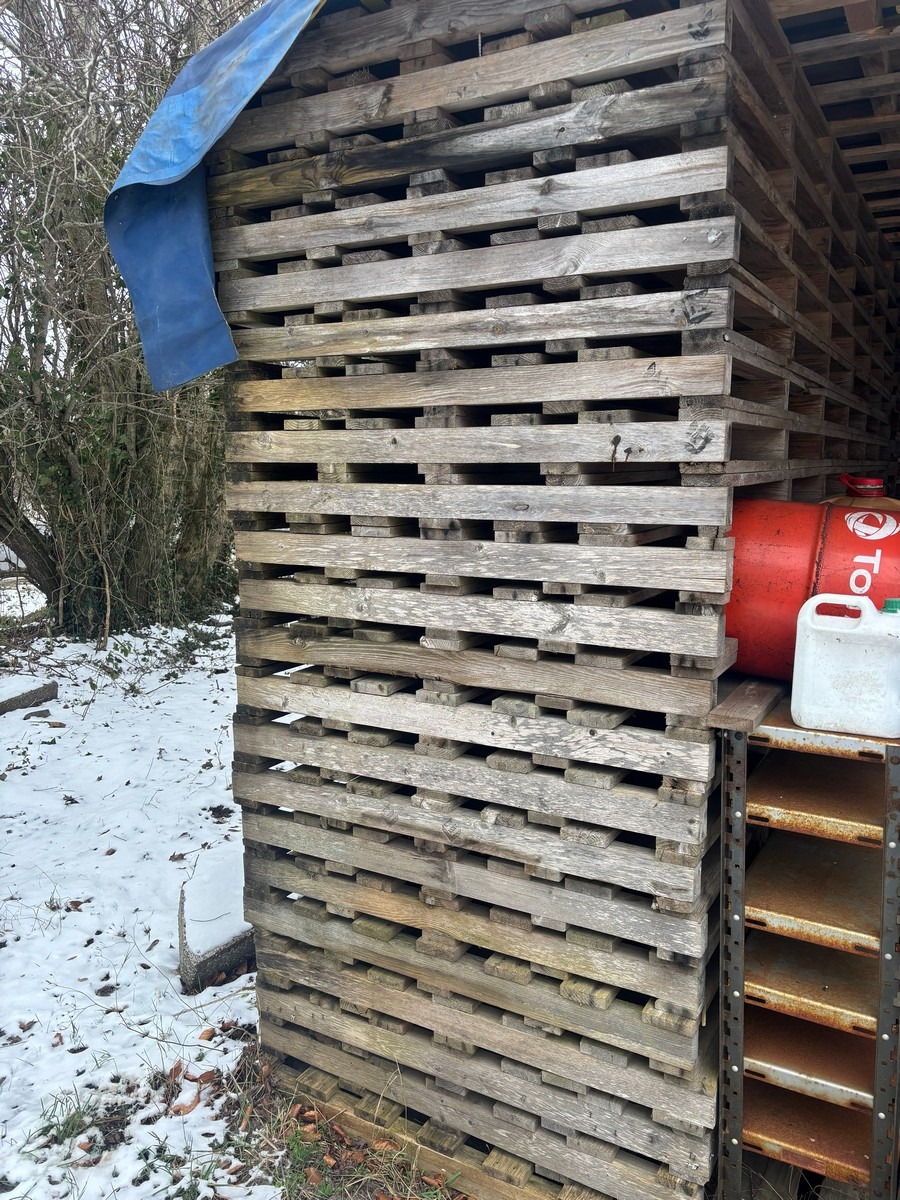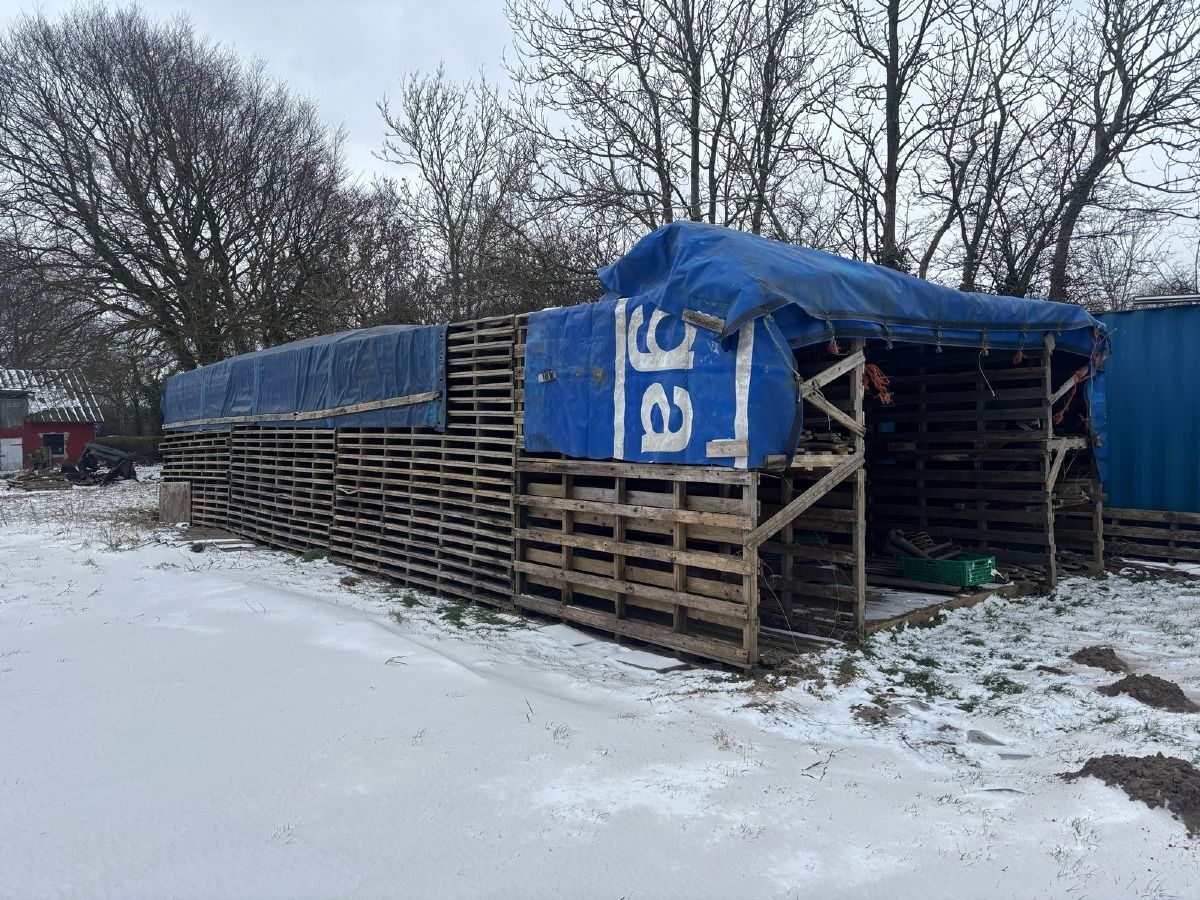 Stort parti træpaller bygget op som skur. Udlevering efter aftale og køber får rigeligt med tid til det.