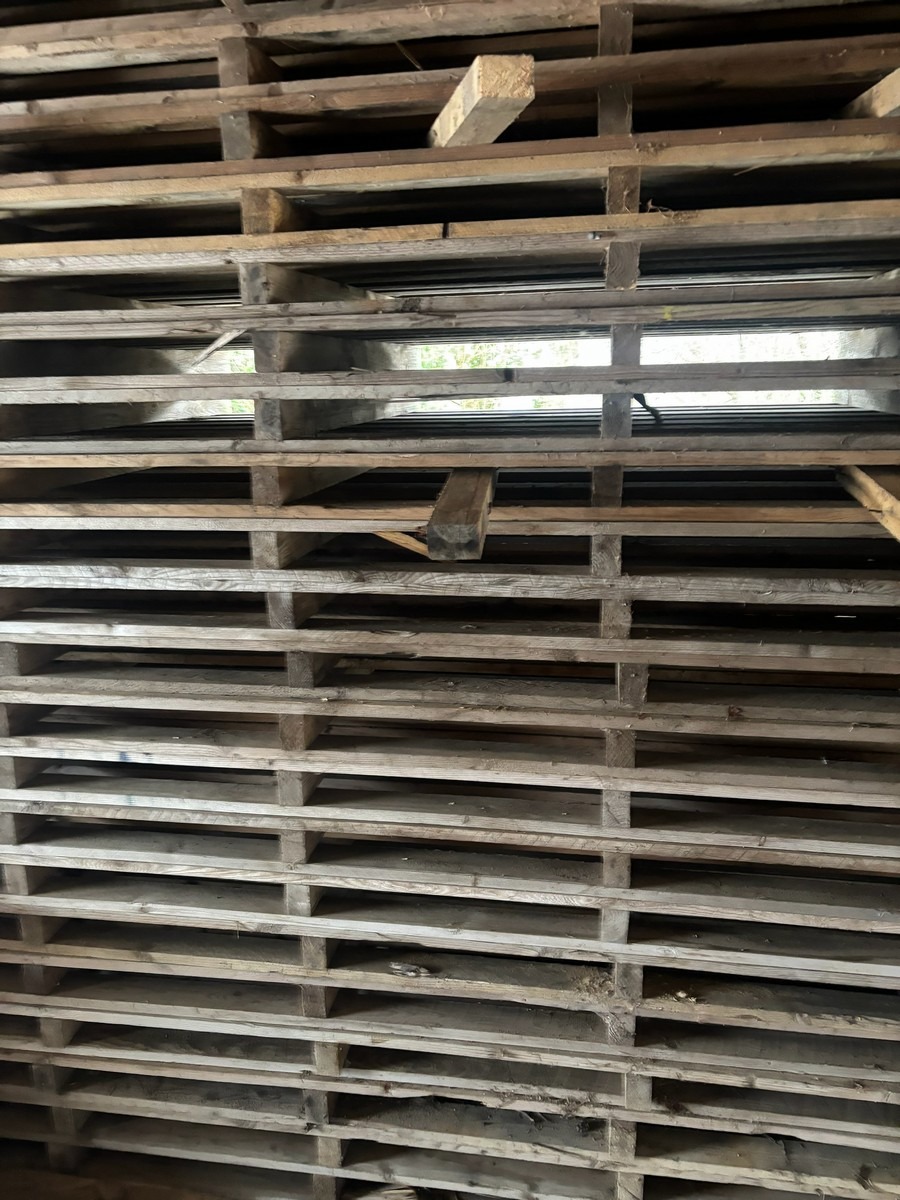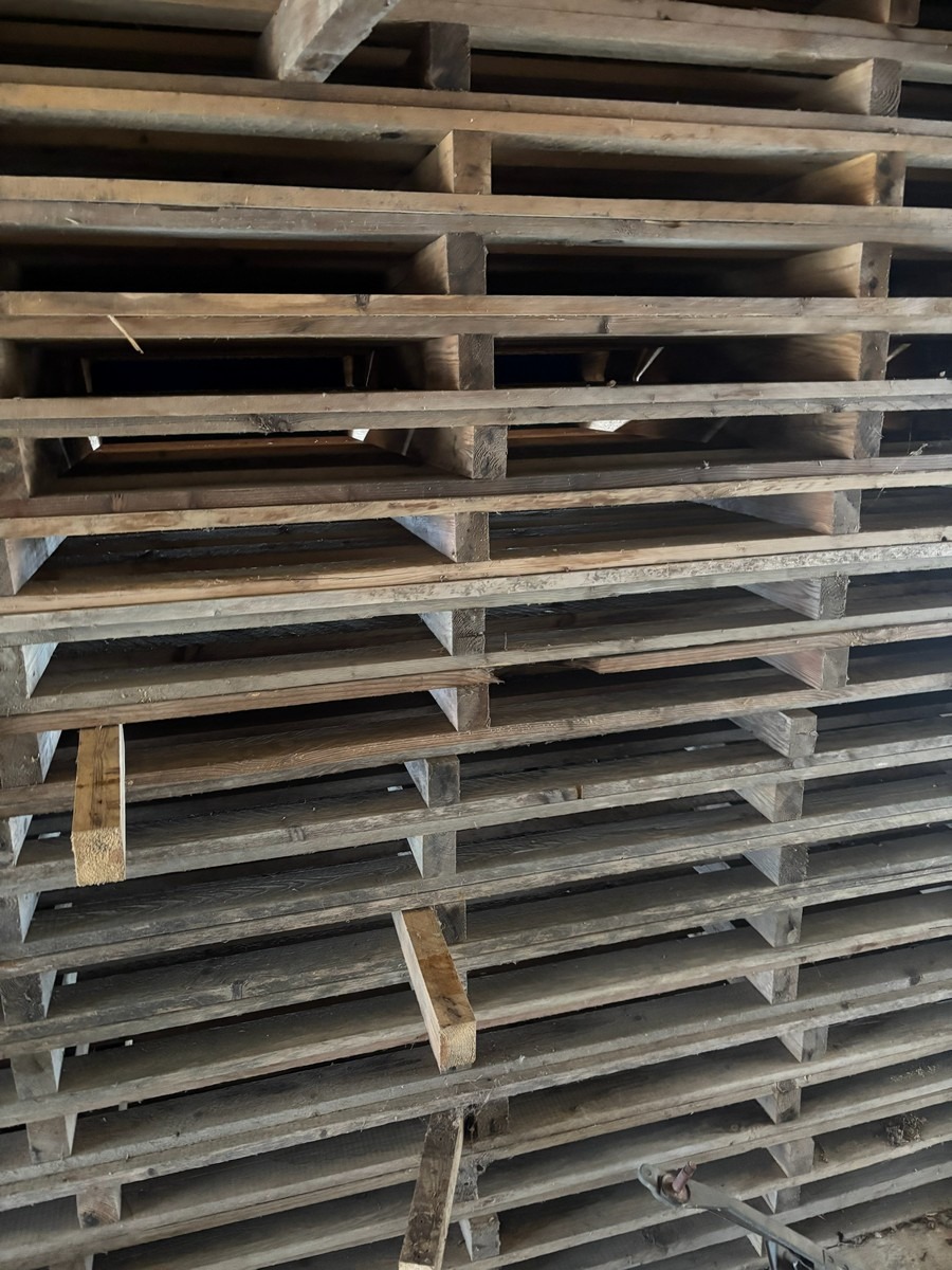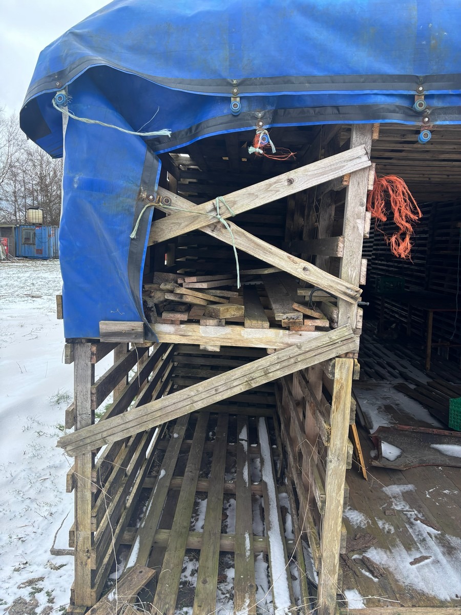 Stort parti træpaller bygget op som skur. Udlevering efter aftale og køber får rigeligt med tid til det.