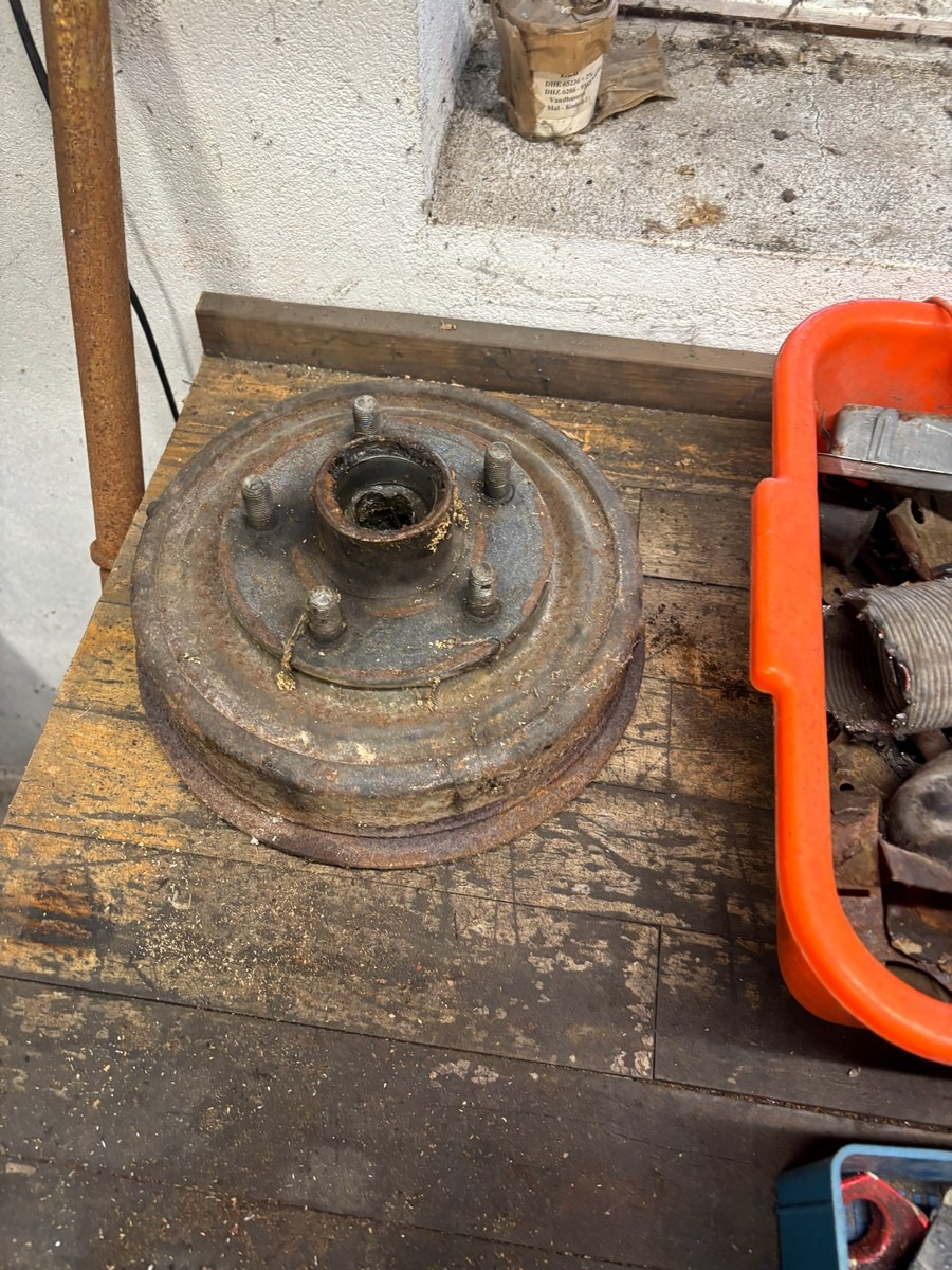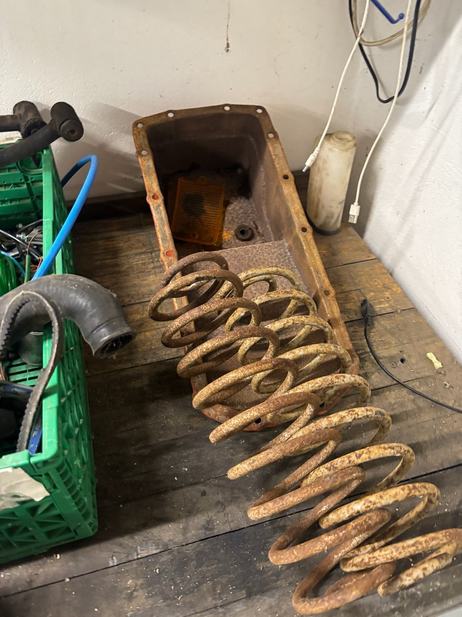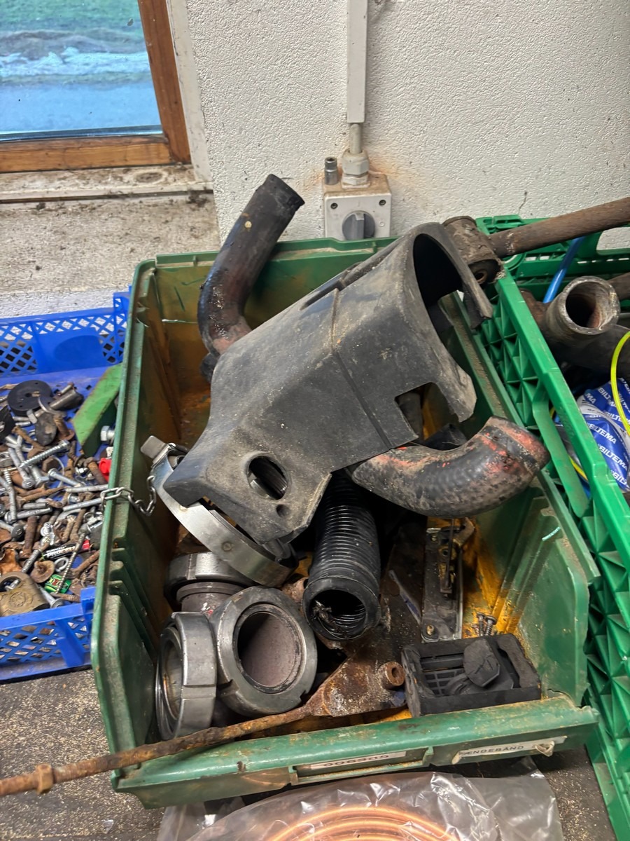 Diverse reservedele, alt på bord (Minus bord og skruestik)