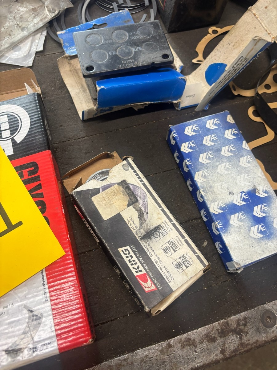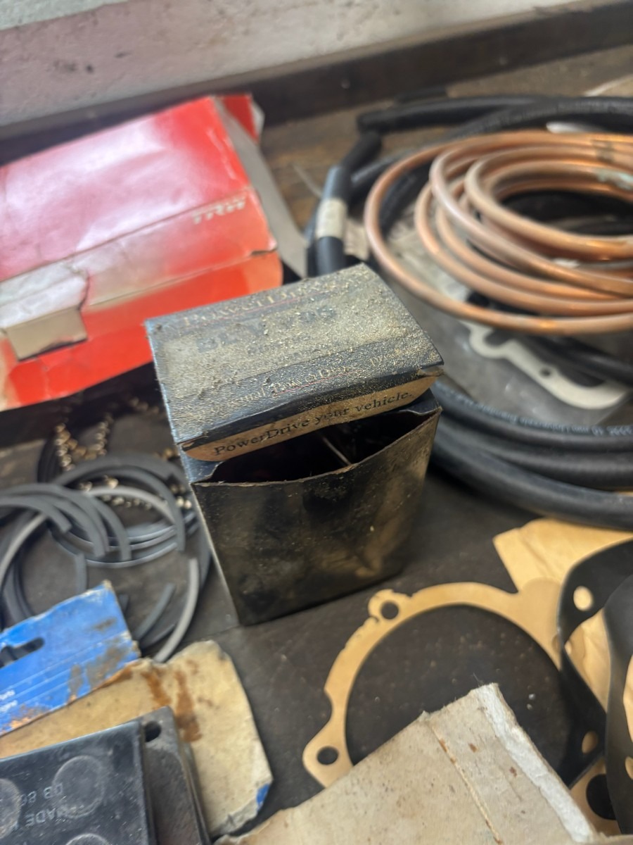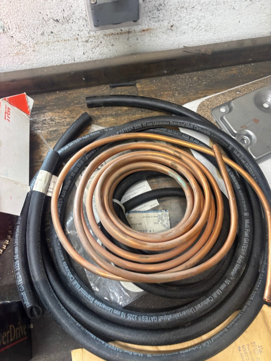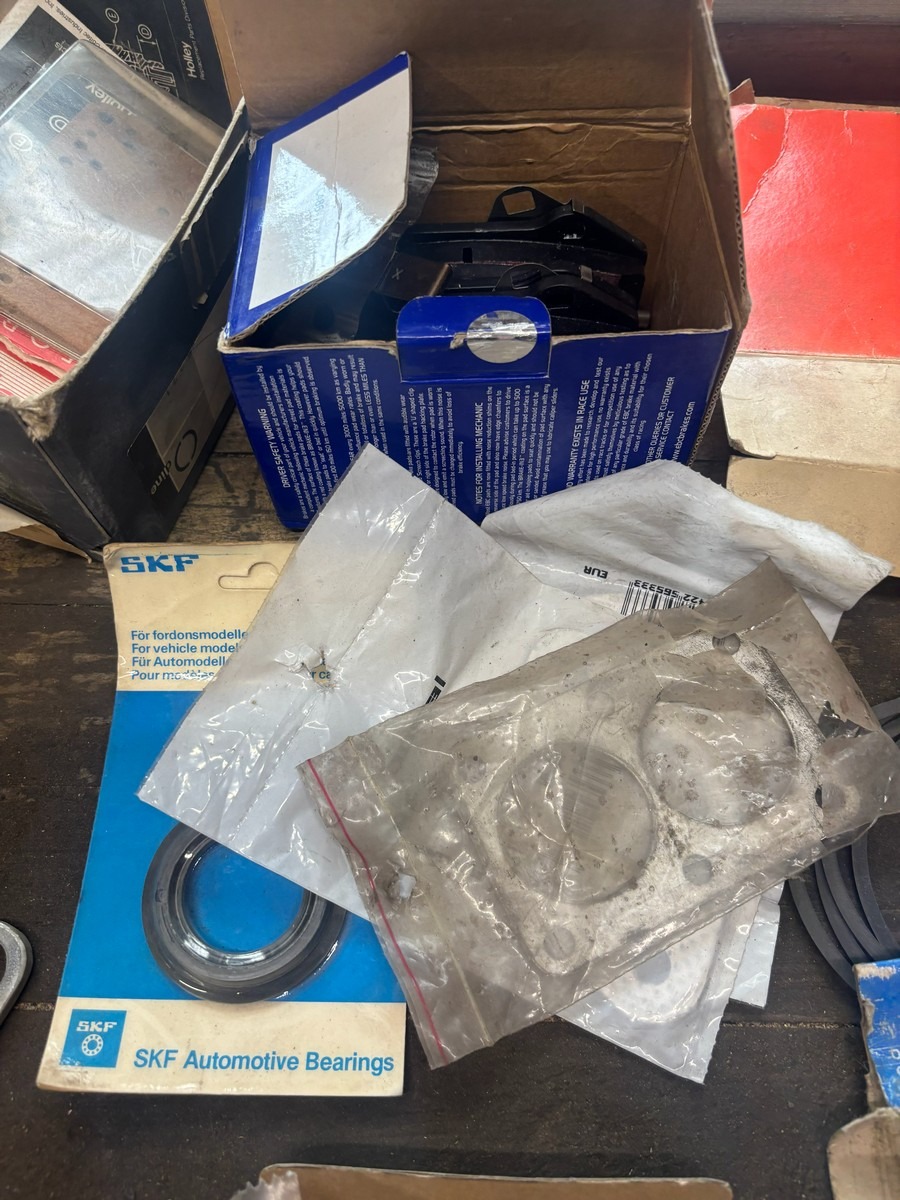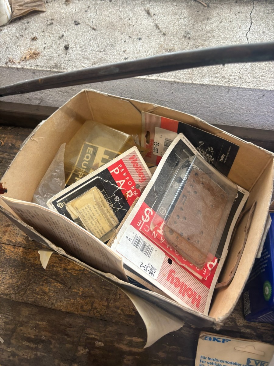 Alt på bord, pakninger, benzinrør mm. (Uden bord). Oprydning fra dødsbo