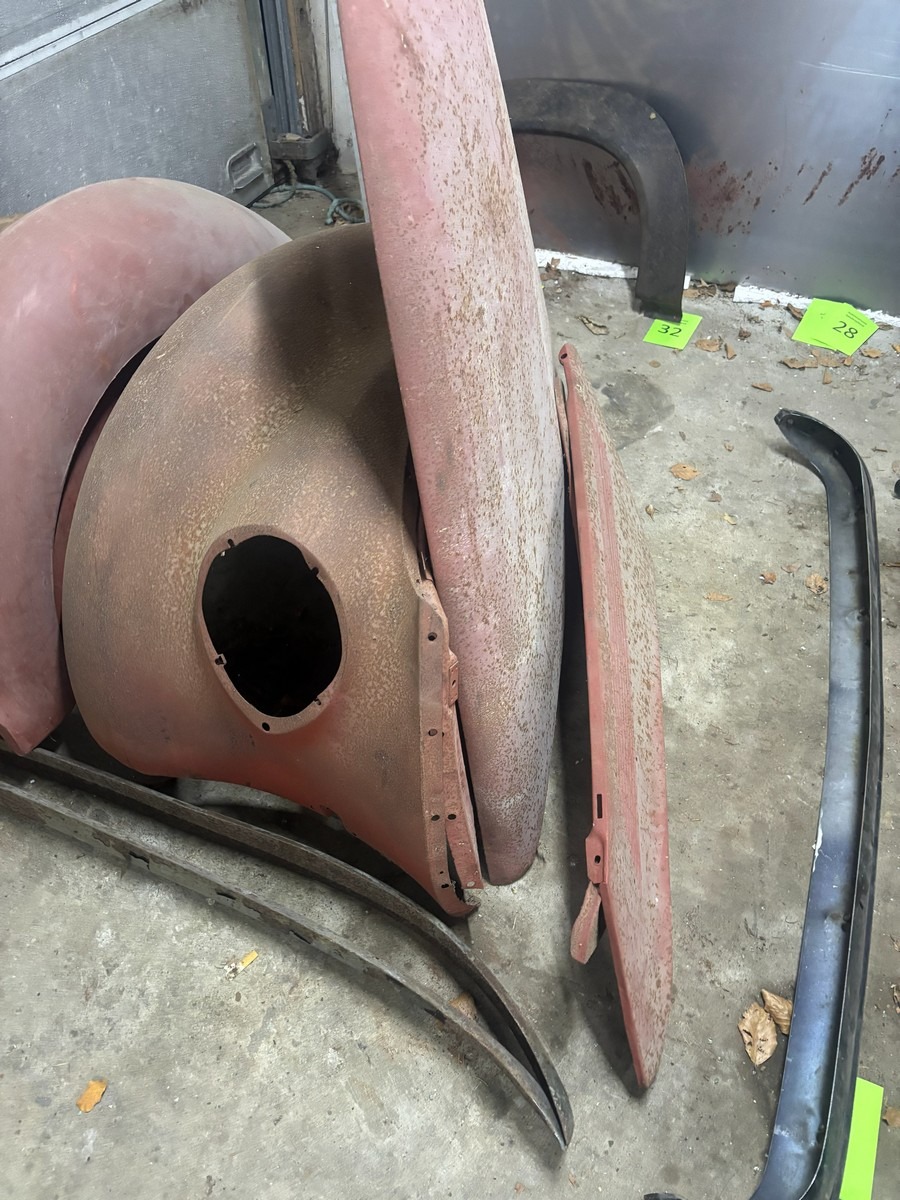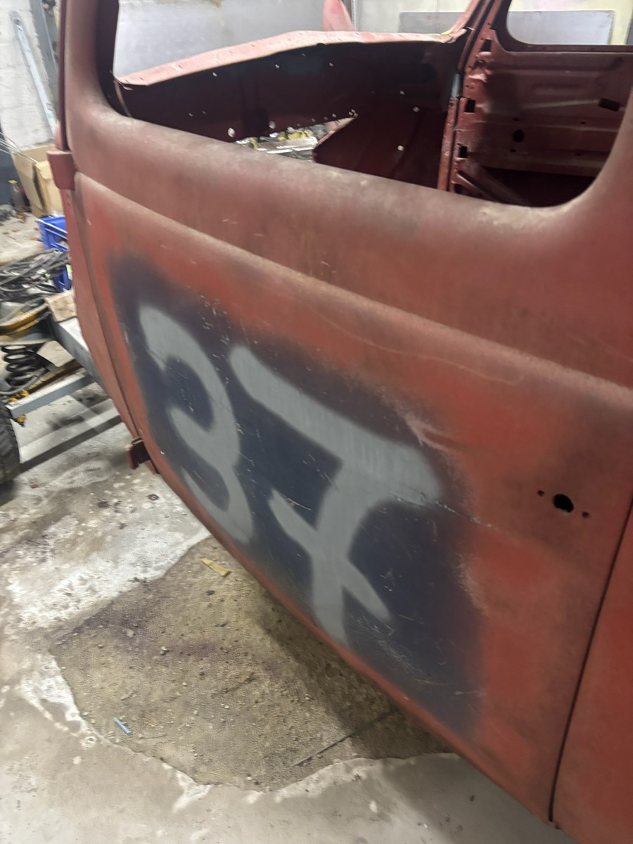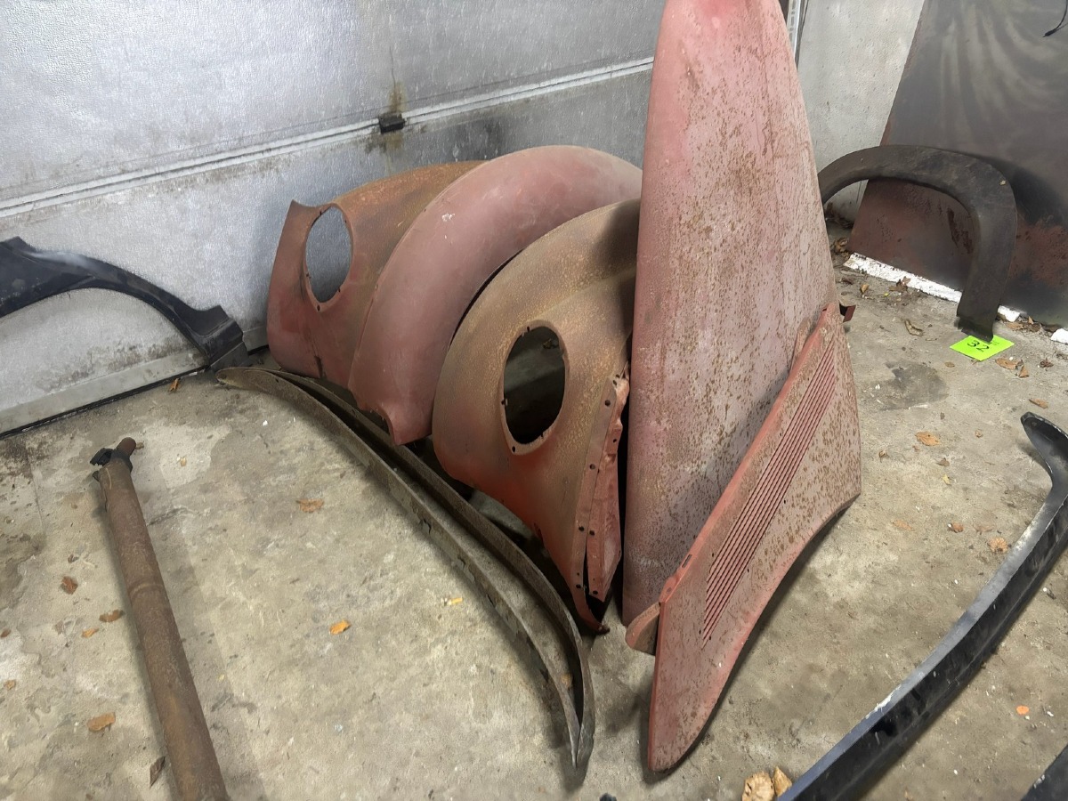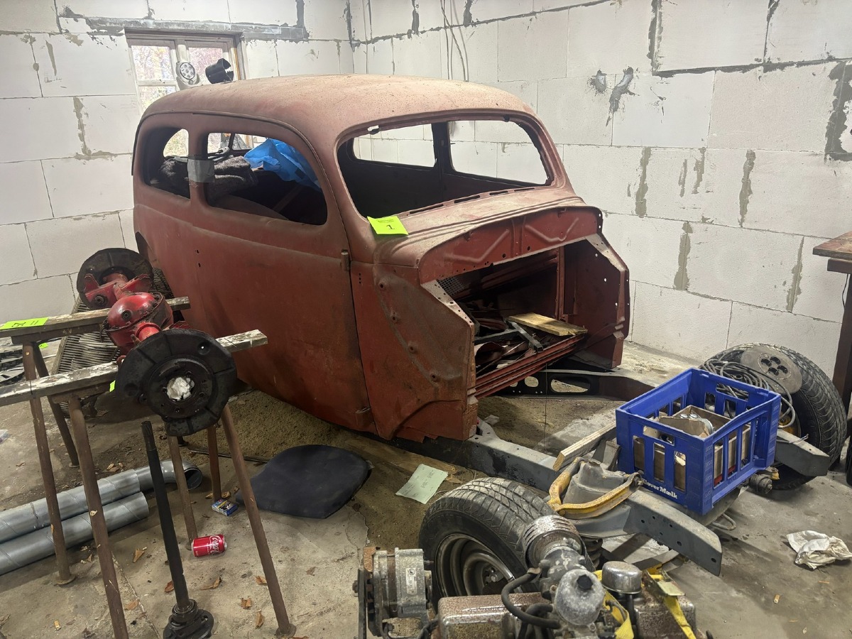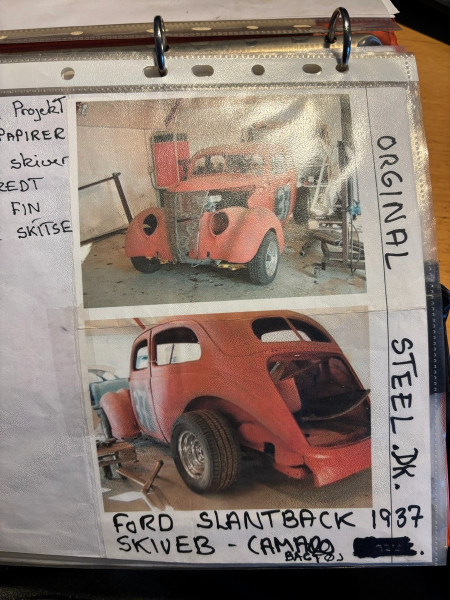 Ford slantback 1937 projekt. Med skærme og diverse dele til. Regi assest medfølger, samt ekstra papir i.