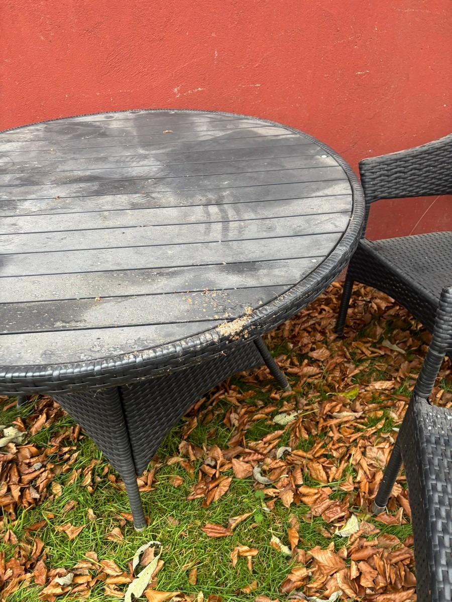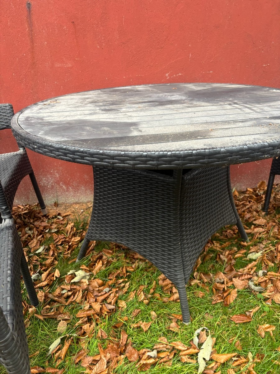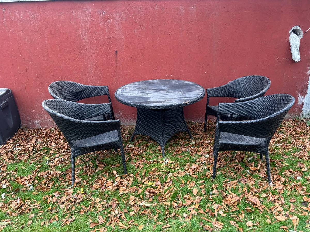 Havebord med 4 havestole. Bemærk: Står udenfor og ikke overdækket.