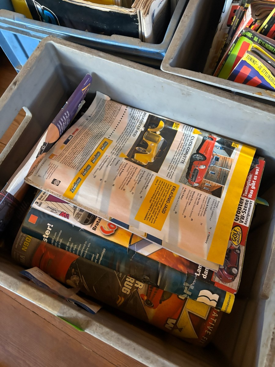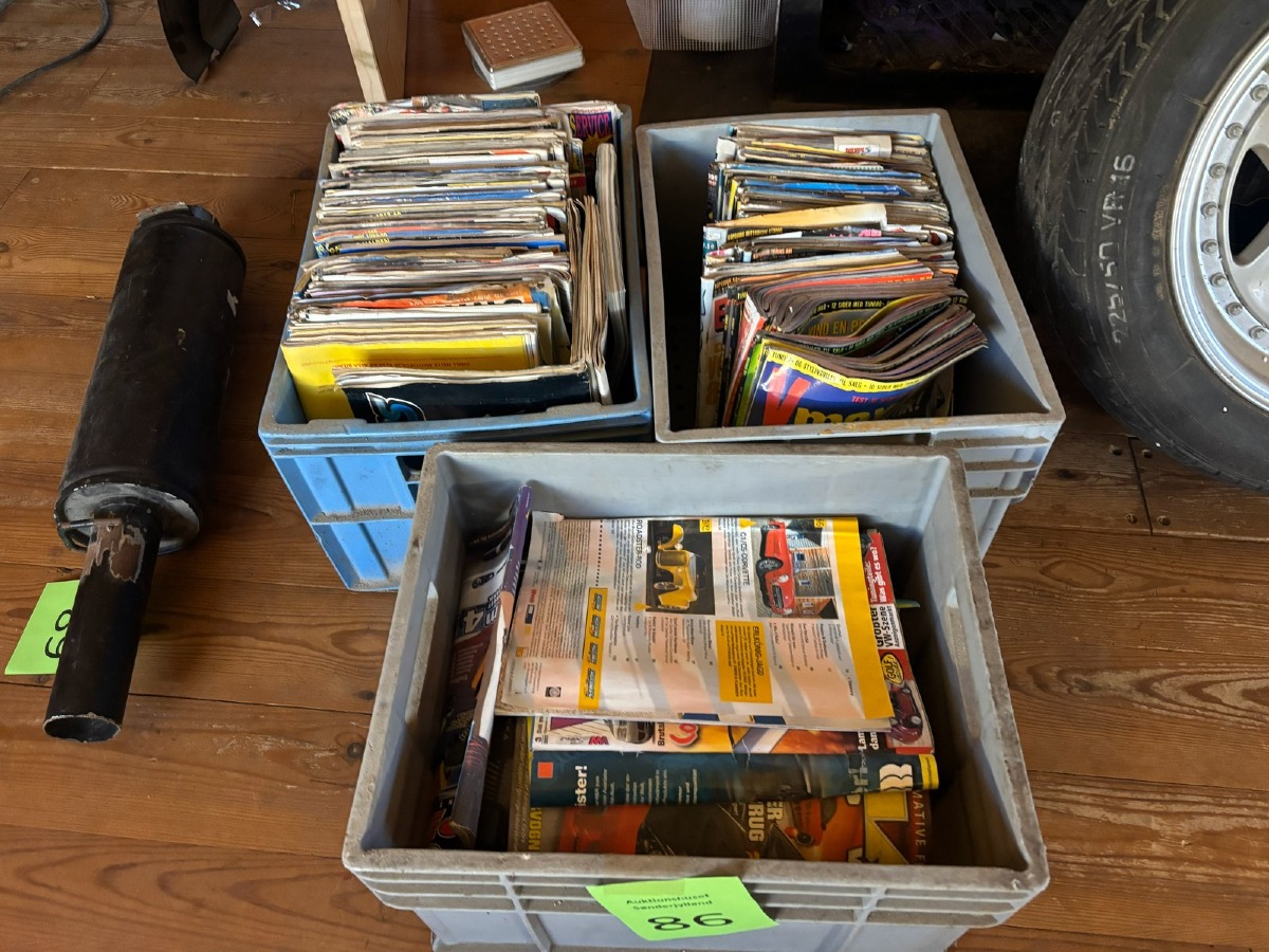 Diverse bilblade. 3 kasser. Mange stk. Forskellige stand.
