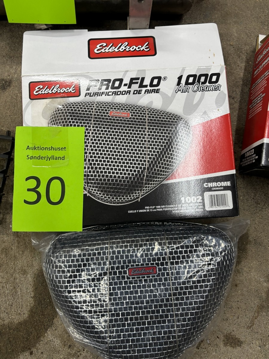 Luftfilter Edelbrock i krom (Nyt). Fra dødsbo