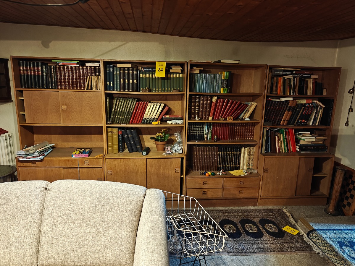 4-fløjet reolsystem af eg H. 170, B. 90 cm. pr. sektion.