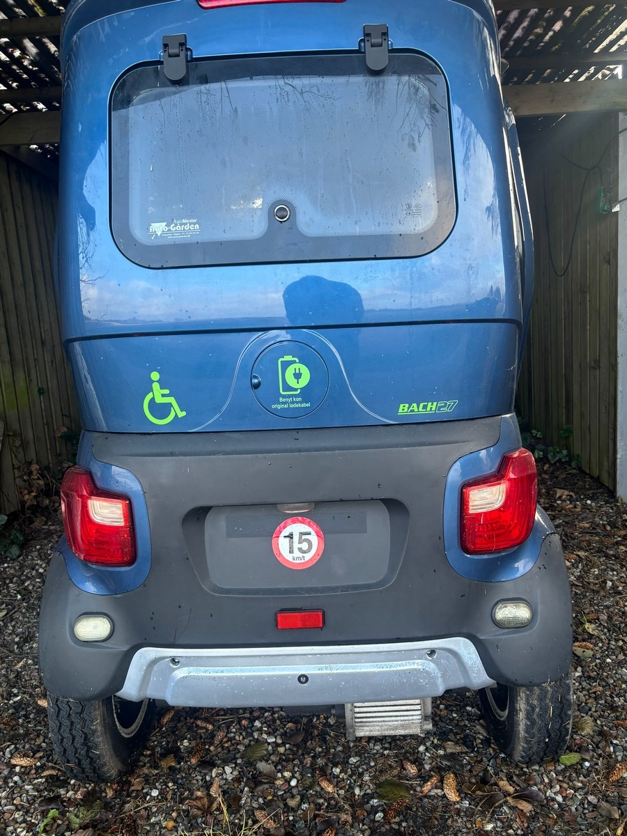 Bach 27 HC kabinescooter. Lyseblå metallic. Fremstår med minimale brugsspor. Kilometerstand 855. Nøgle og opladekabel medfølger.