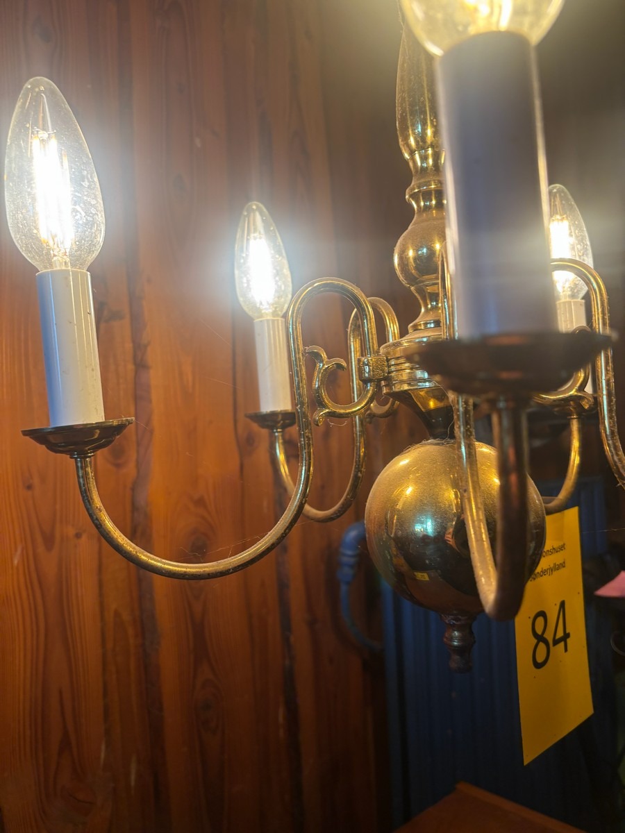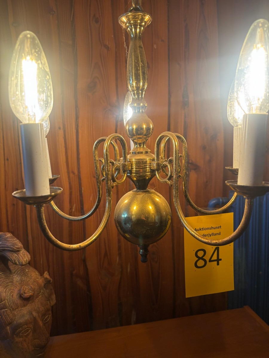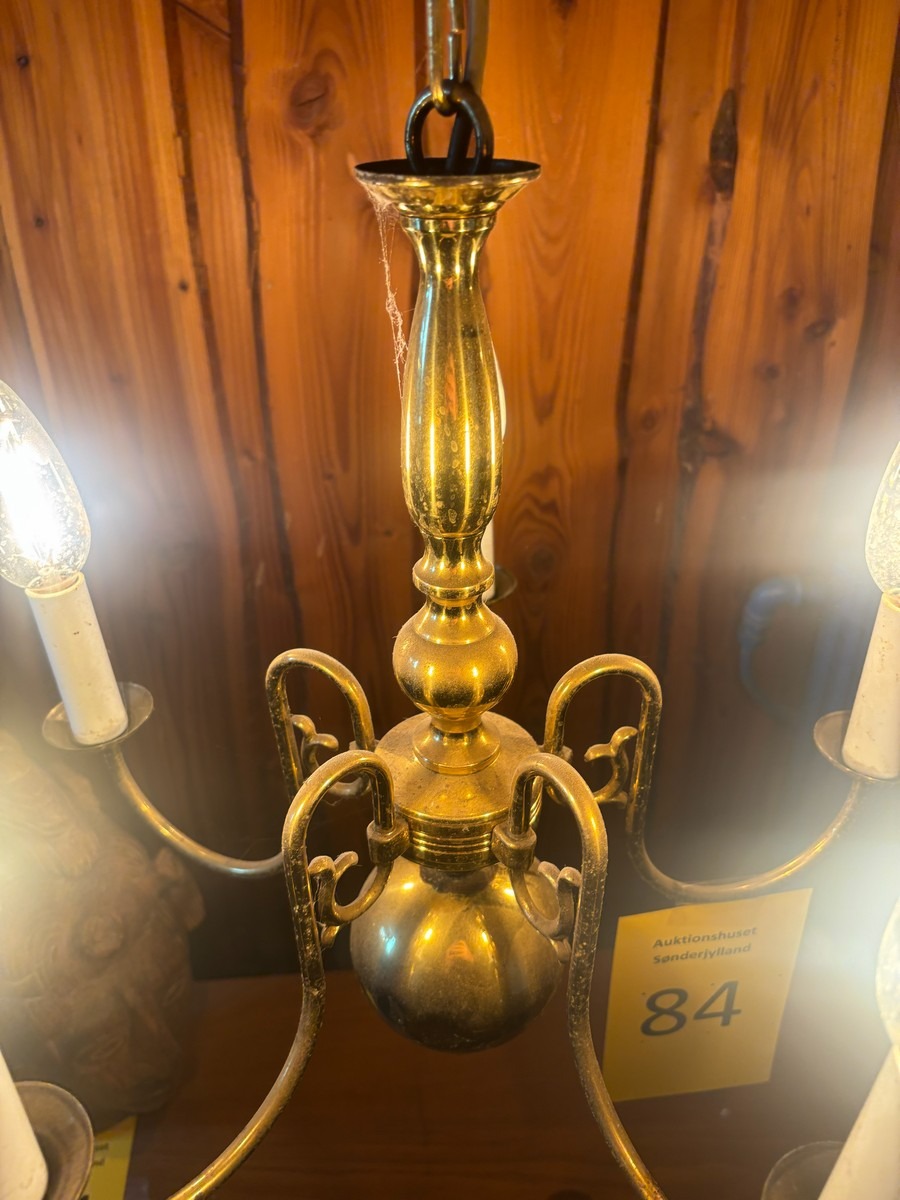 Barokform loftkrone af messing med 4 arme. H. 40 cm. Køber skal selv afmontere.