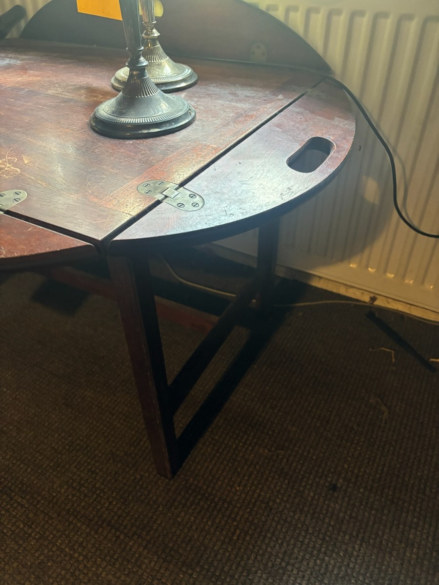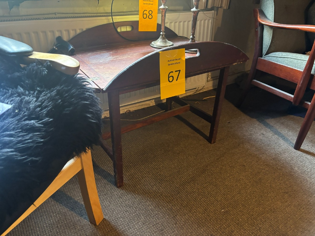 Butlers tray bakkebord af mahogni. Fremstår med slid og skjolder. 48 x 90 x 73 cm.