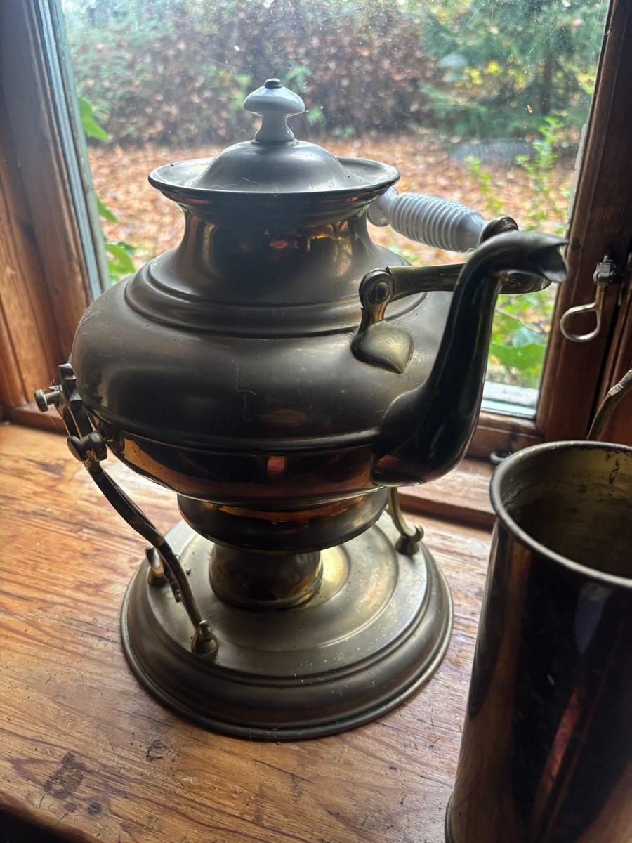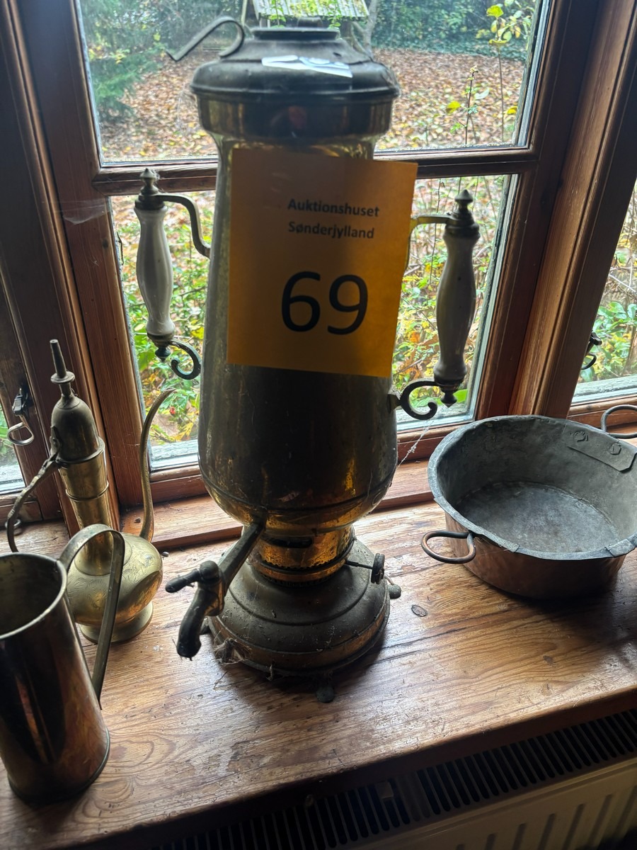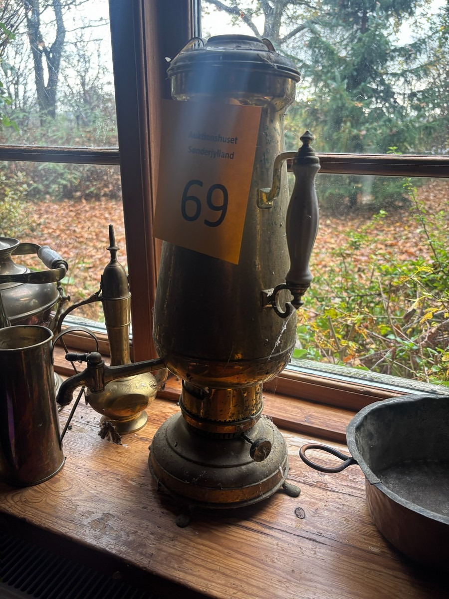 Dele messing og kobber. Blandet stand. H. for samovar til sammenligning. 50 cm.