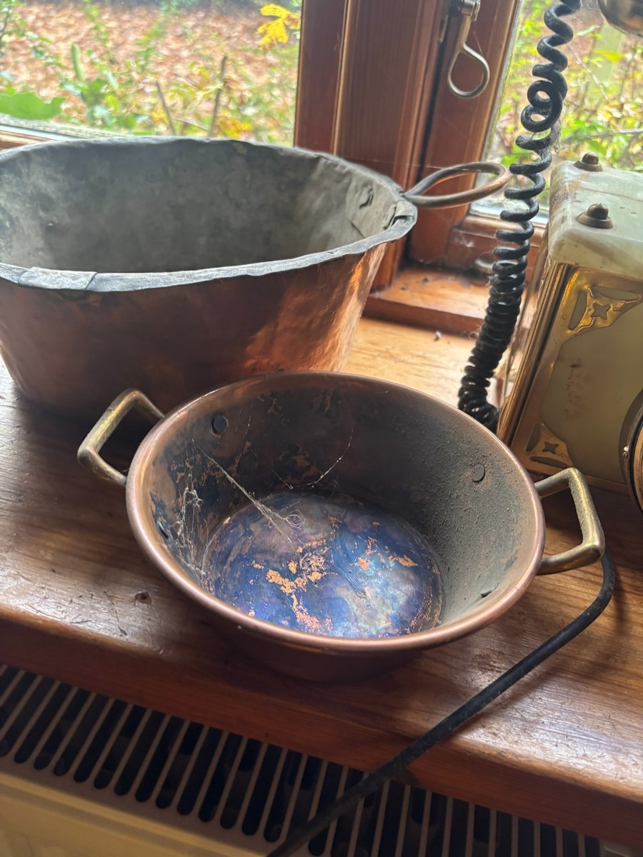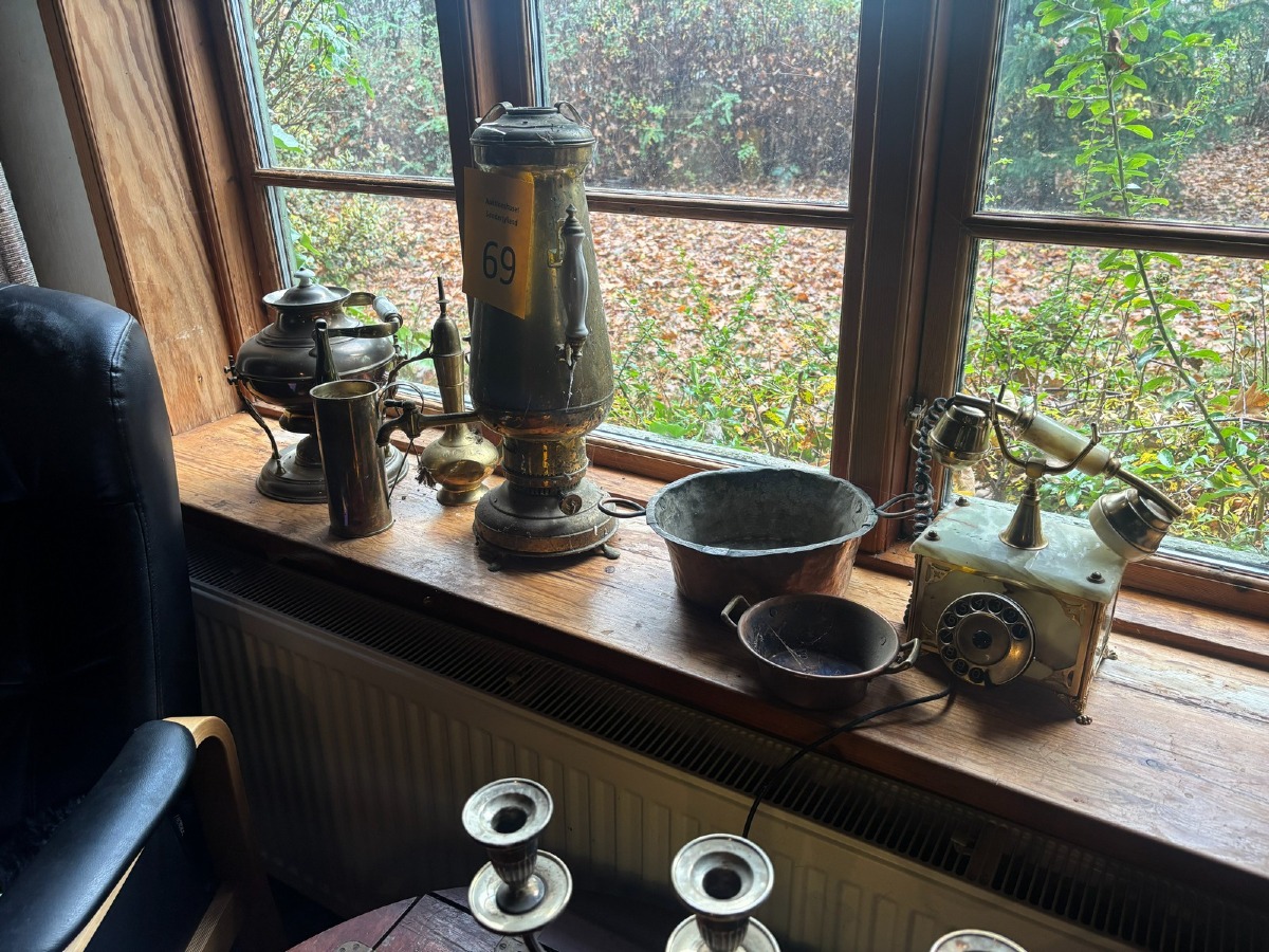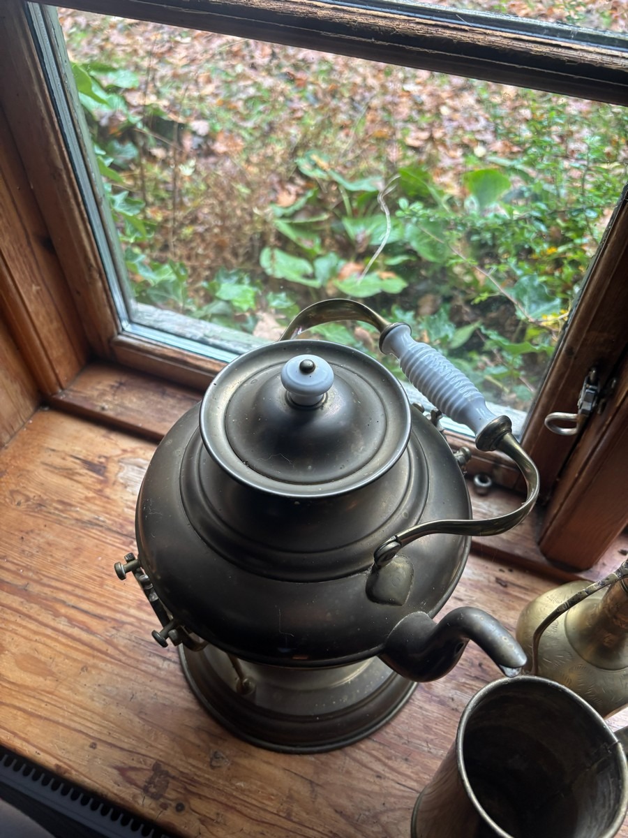 Dele messing og kobber. Blandet stand. H. for samovar til sammenligning. 50 cm.