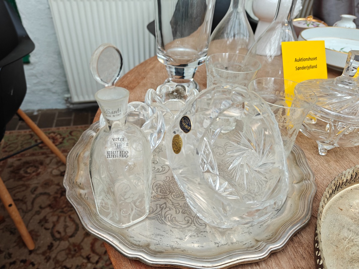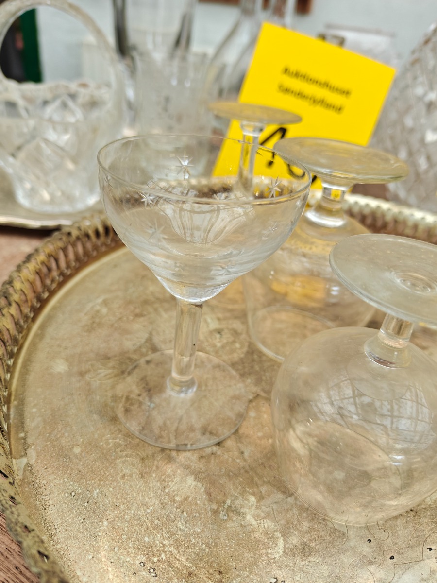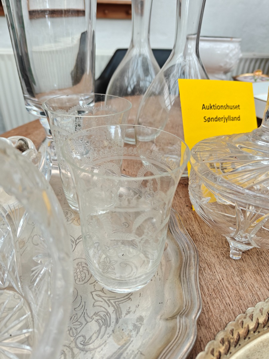 Diverse dele glasservice. Drikkeglas karafler m.m.