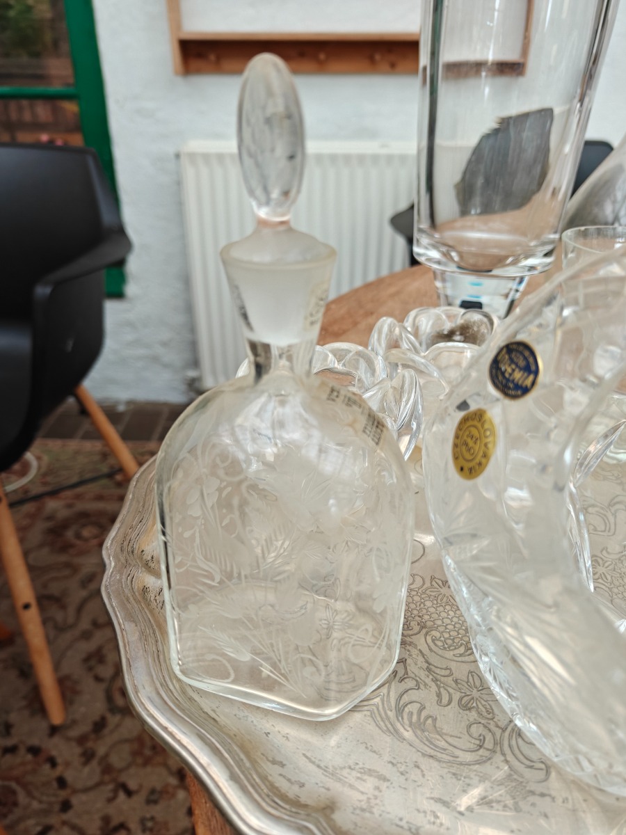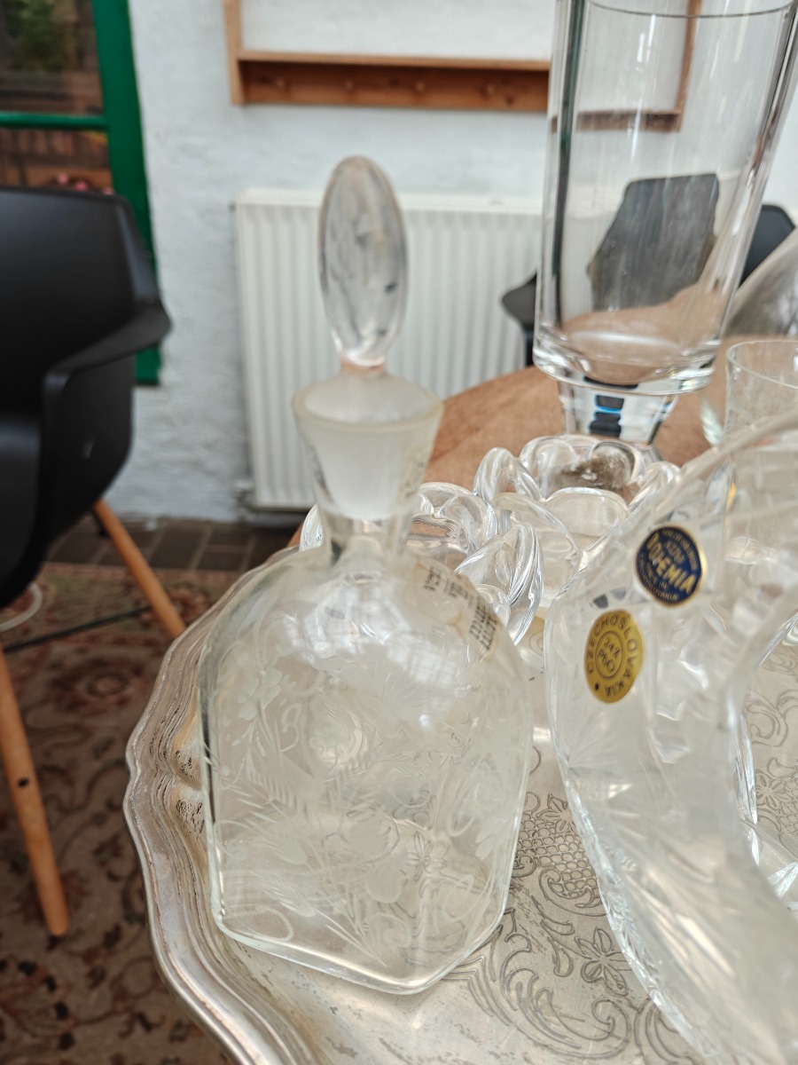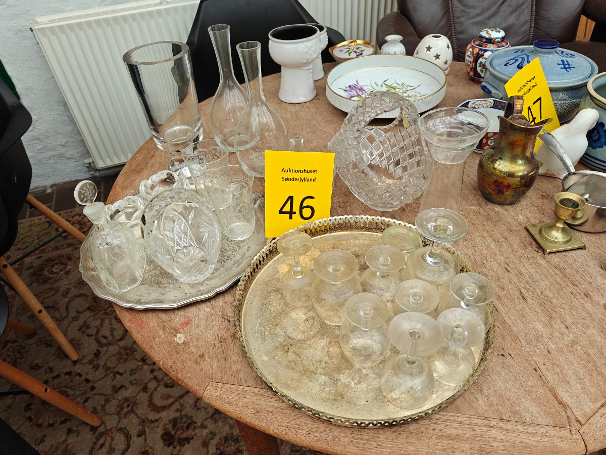 Diverse dele glasservice. Drikkeglas karafler m.m.