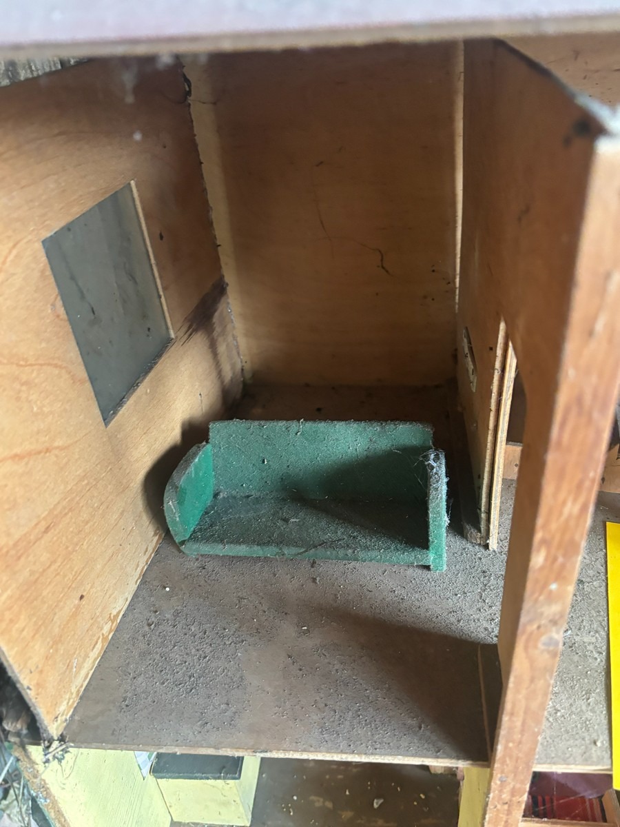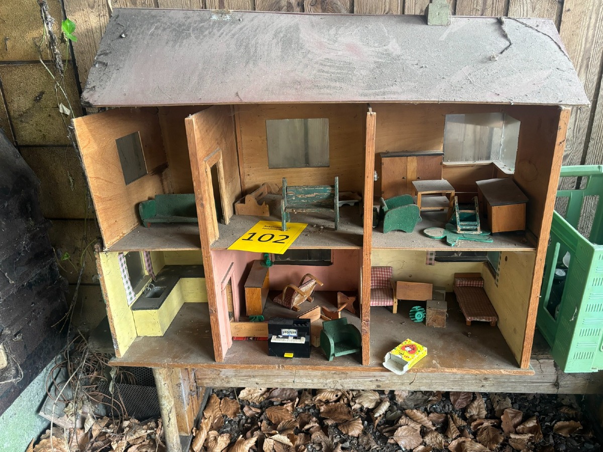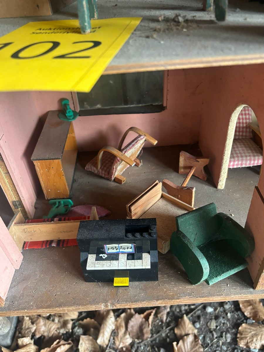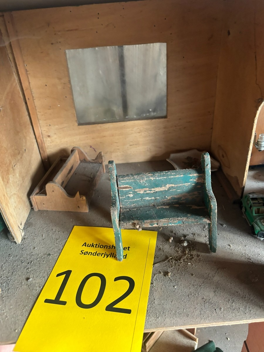 Dukkehus, hjemmelavet. Indbo medfølger. Mindre defekter.