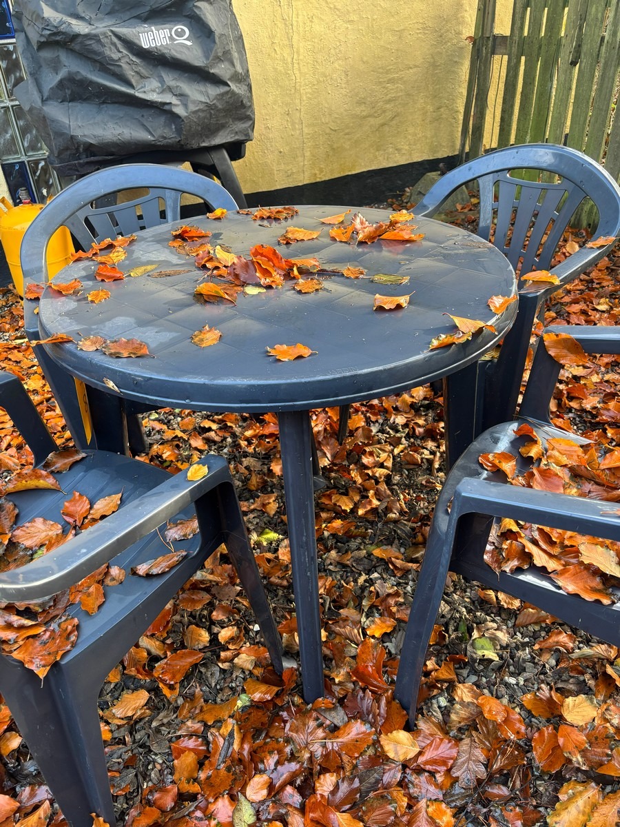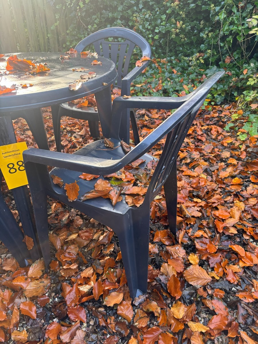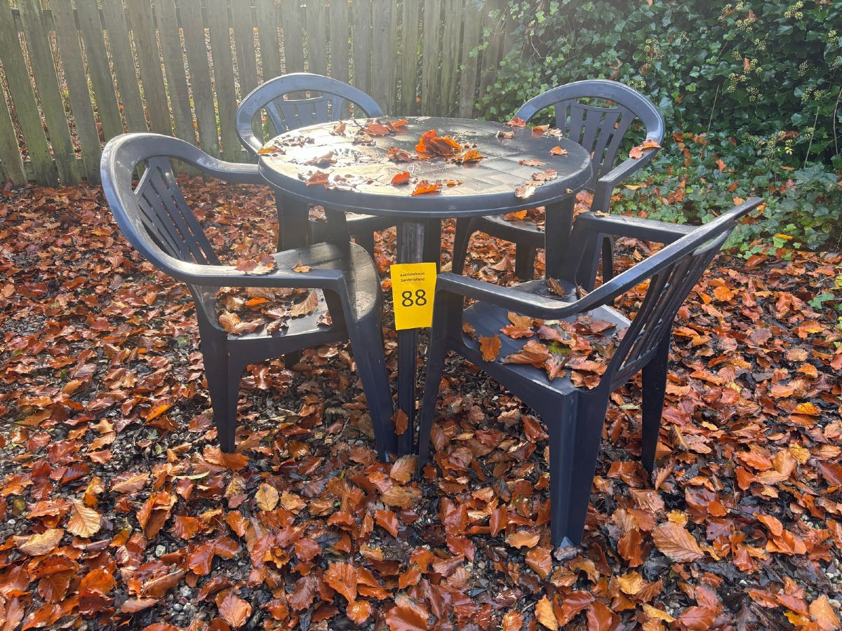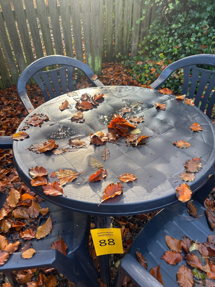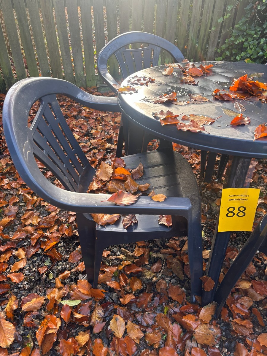 Havemøbler af plast Rundt bord samt 4 stole. Ø 85 cm.