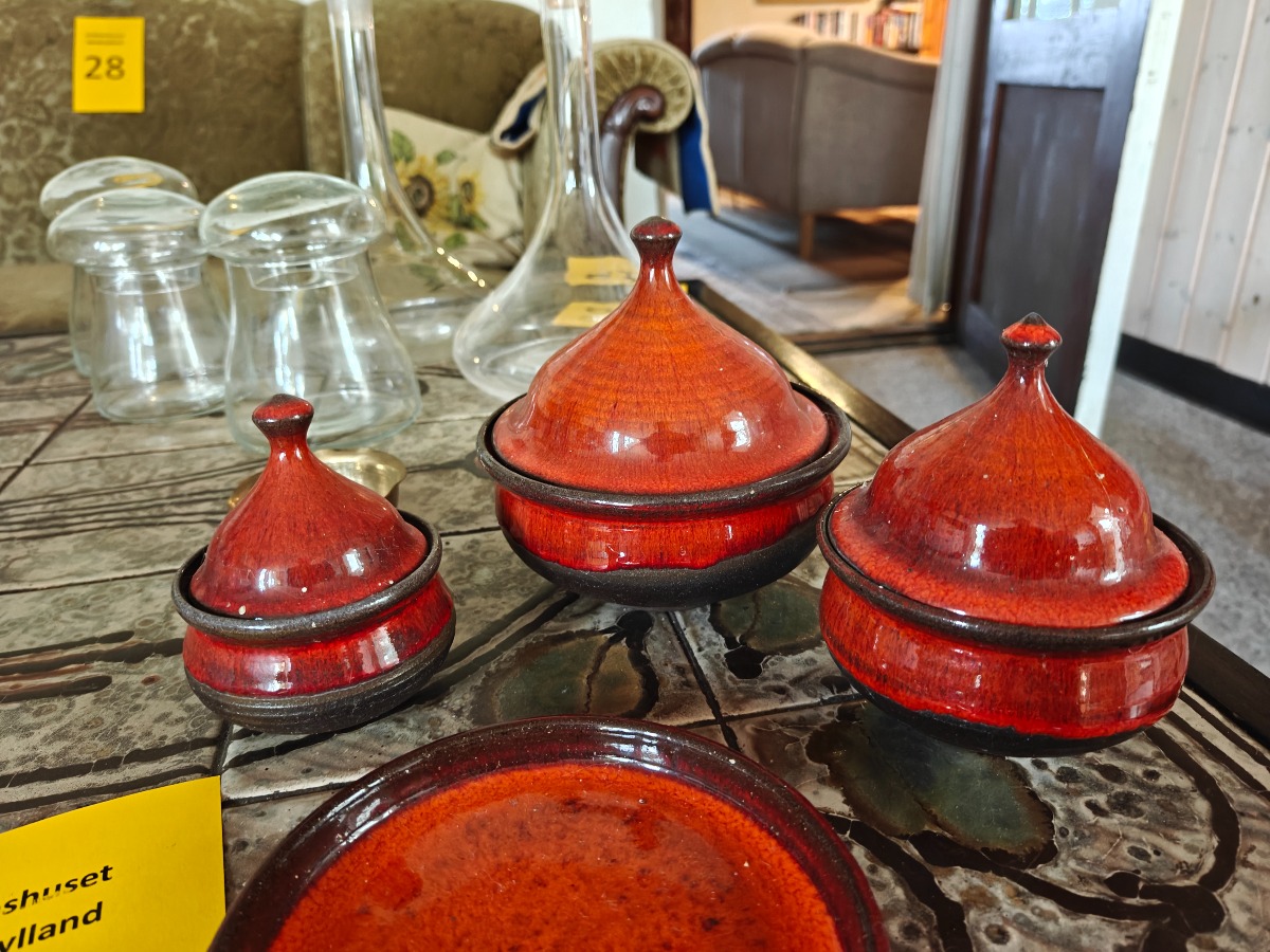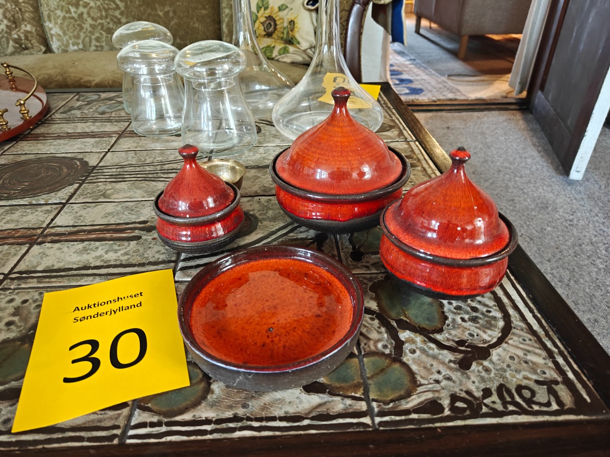 Holbæk Keramik 4 dele. 3 lågkrukker samt lille fad.