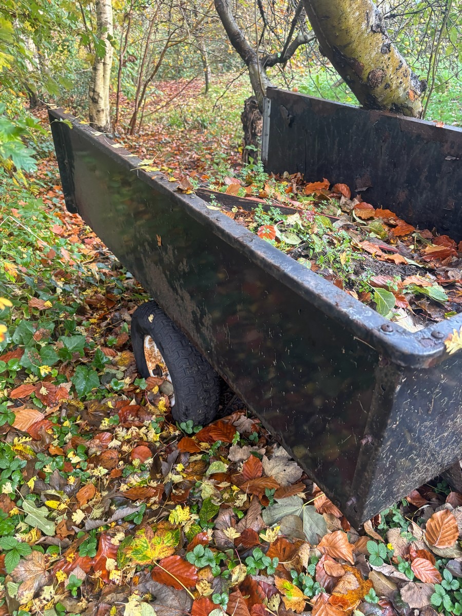 Påhængsvogn til havetraktor. Sortlakeret metal. Stand ukendt.
