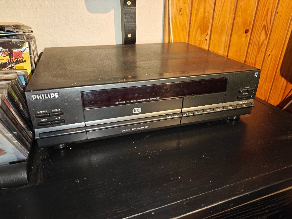 Philips CD-afspiller samt 2 Pro HIFI Audio 9-200 højttalere. Vi garanterer ikke for funktionaliteten.