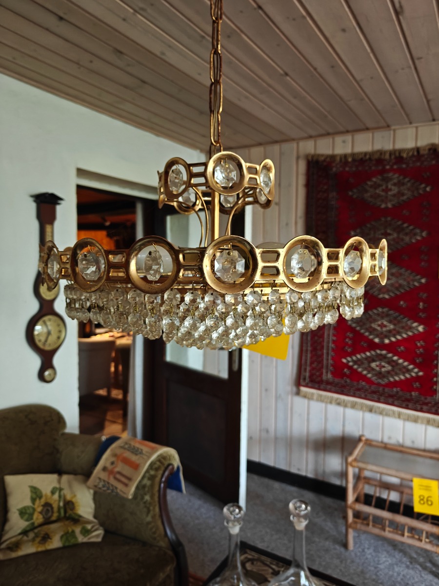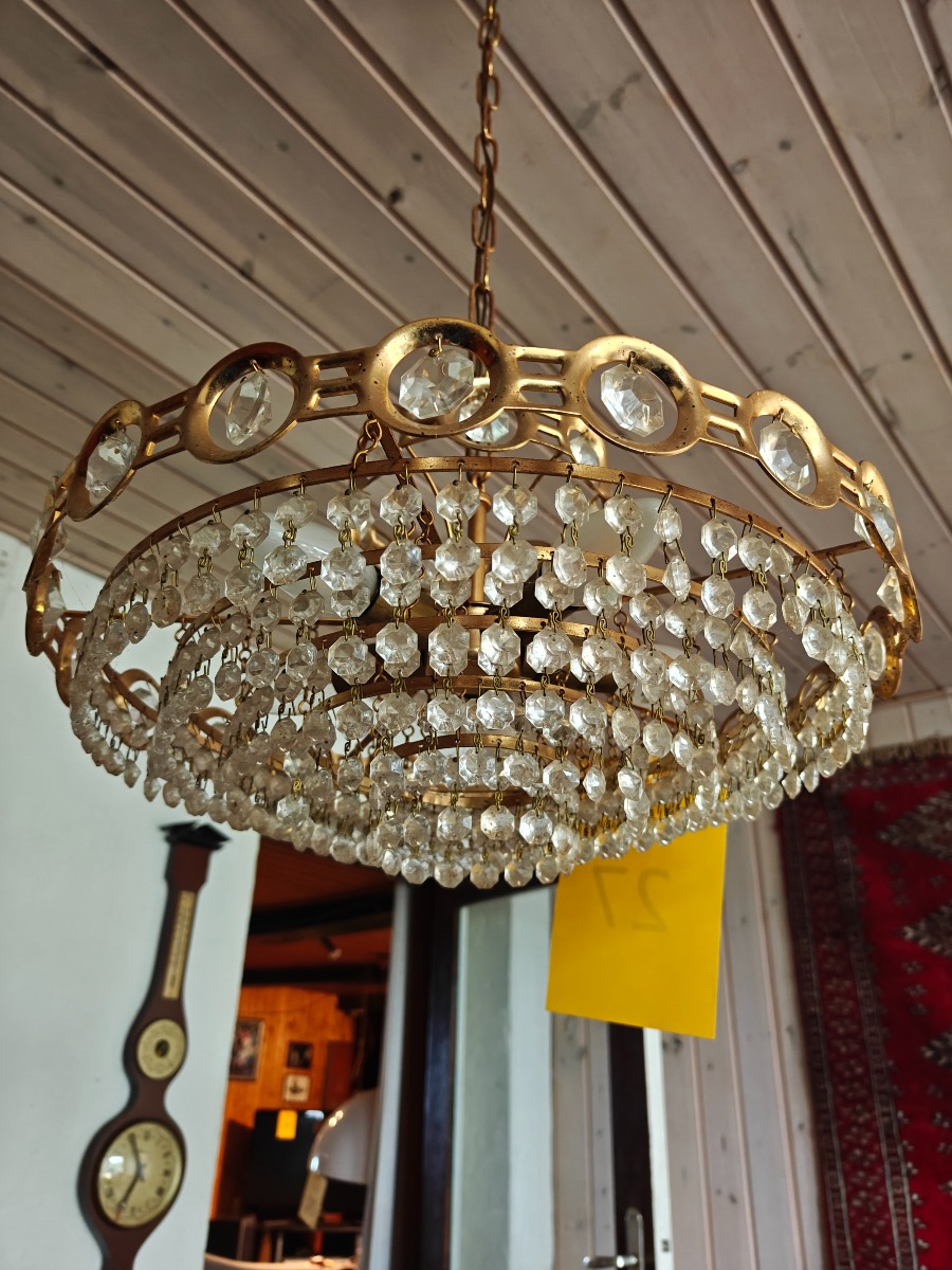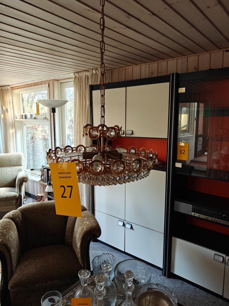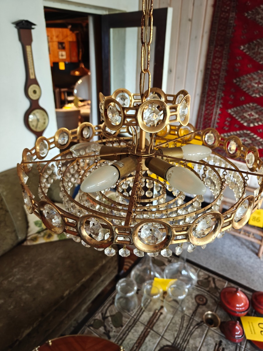Prisme loftkrone med stel af messing. Ø. 40 cm. Køber skal selv afmontere.