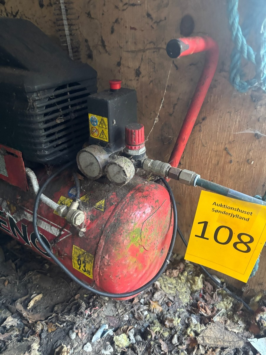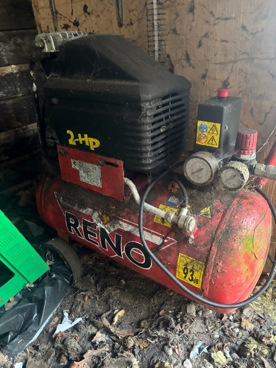 Reno 2Hk kompressor. Vi garanterer ikke for funktionaliteten samt luftslange med automatisk oprul.