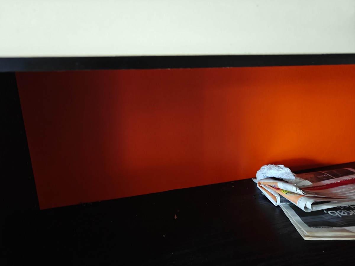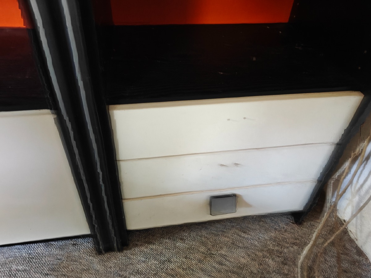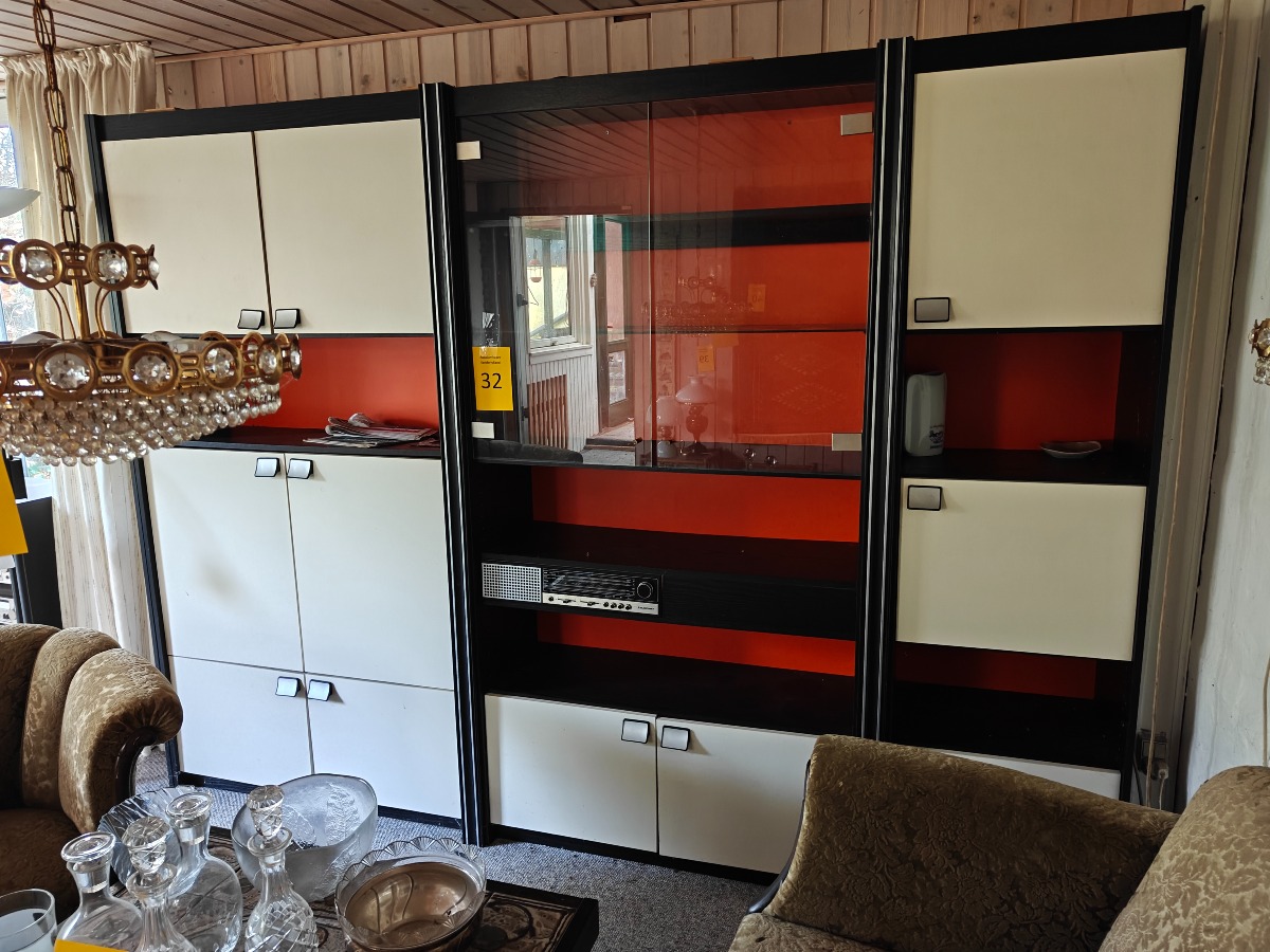 Reolsystem i 3 sektioner. Laminerede overflader. H. 200, B. 1050og 50 cm. Mindre skader og manglende greb.