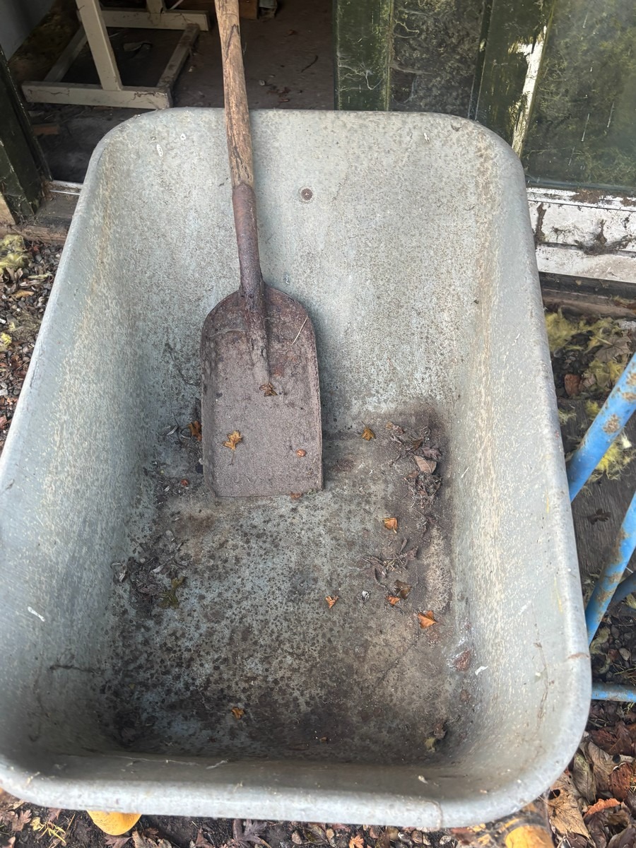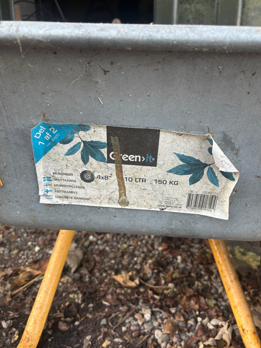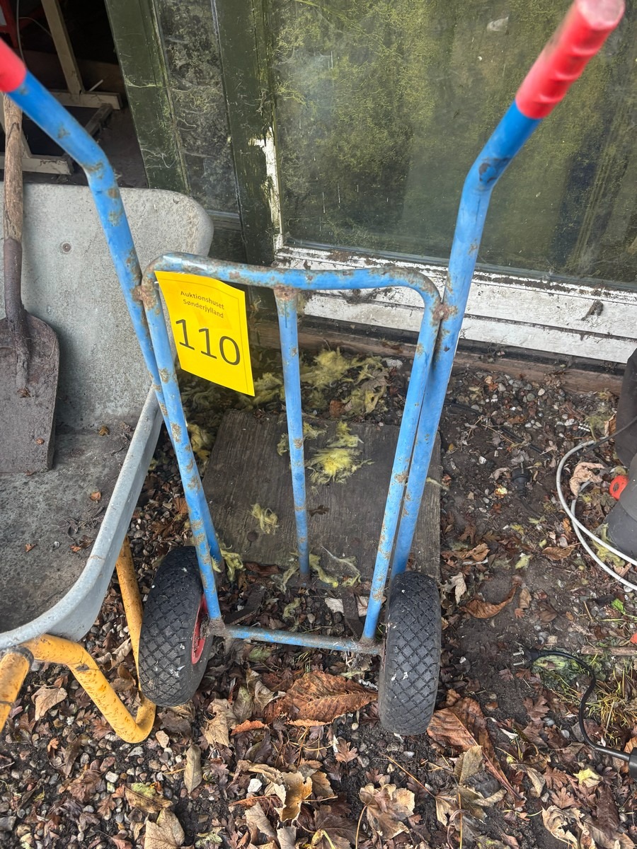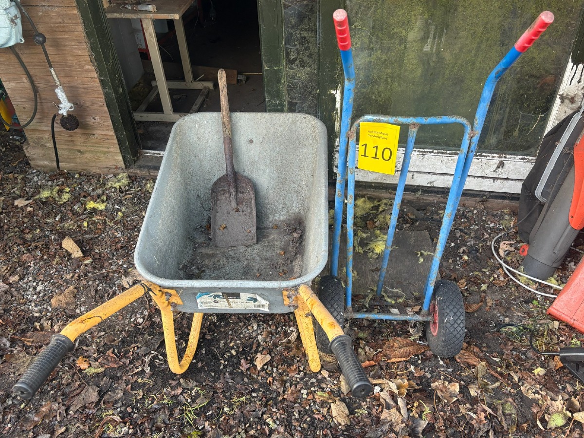 Trillebør og sækkevogn samt kulskovl. Med brugspræg.