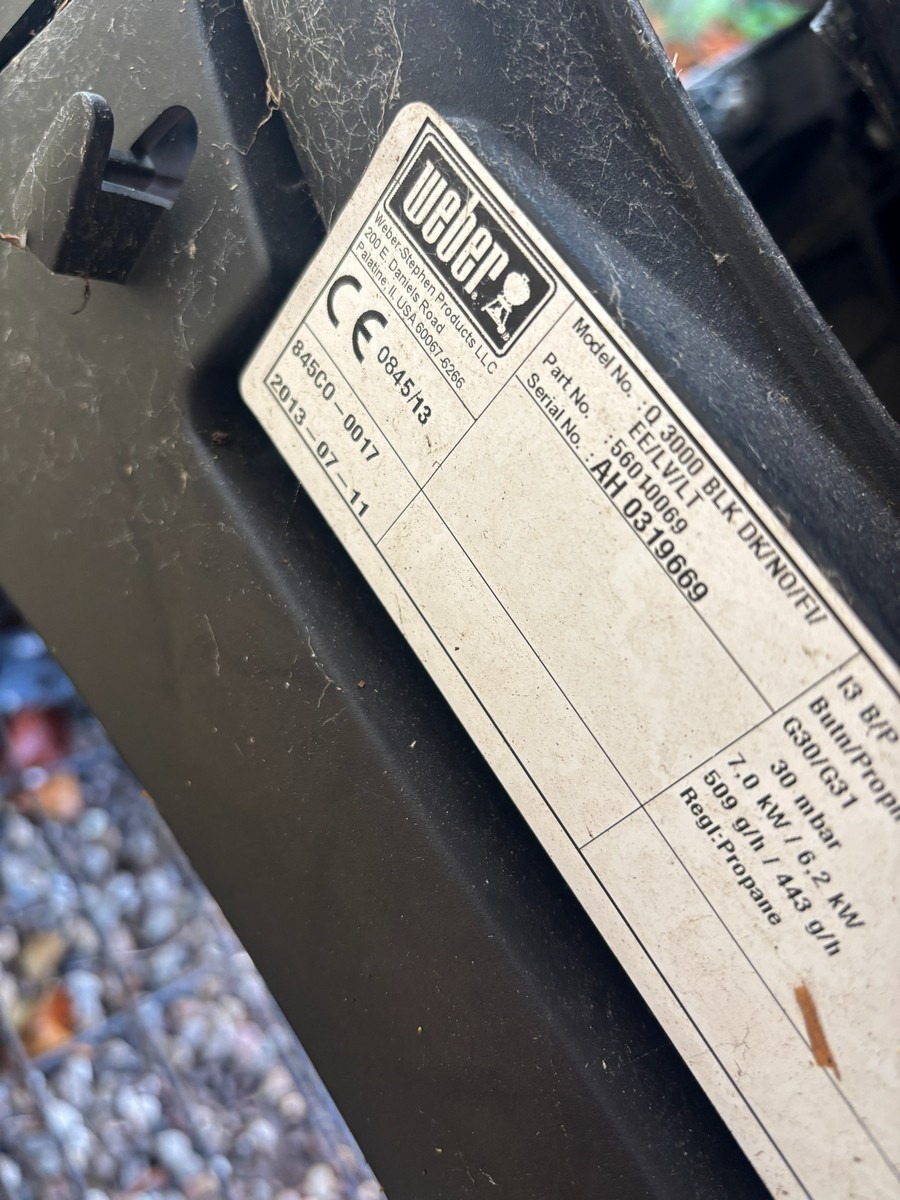 Weber Q3000 gasgrill. Frermstår med brugsspor. Gasflaske medfølger. Vi garanterer ikke for funktionalitet og eventuelle mangler.