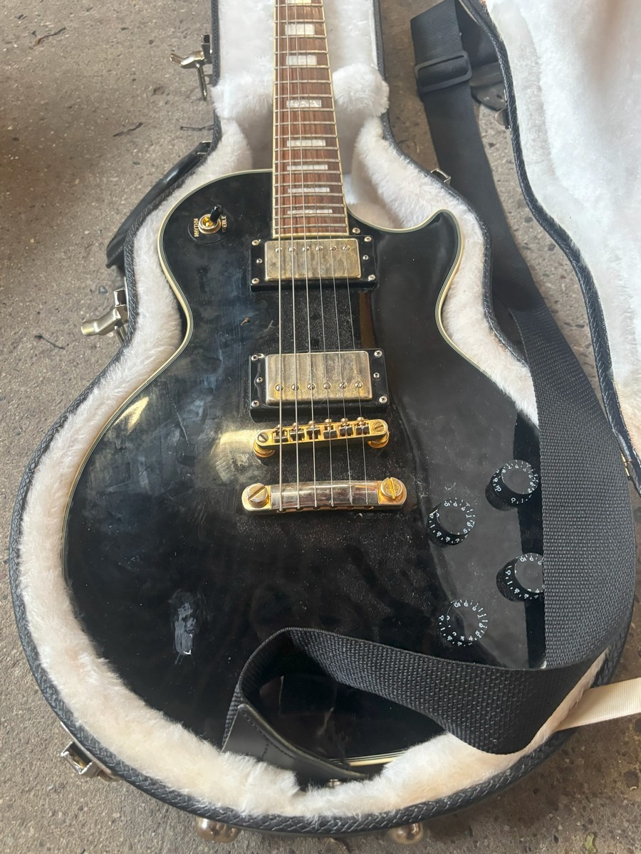 Epiphone Les Paul Custom Elguitar med tilhørende kuffert. Fremstår i pæn stand. Fra dødsbo