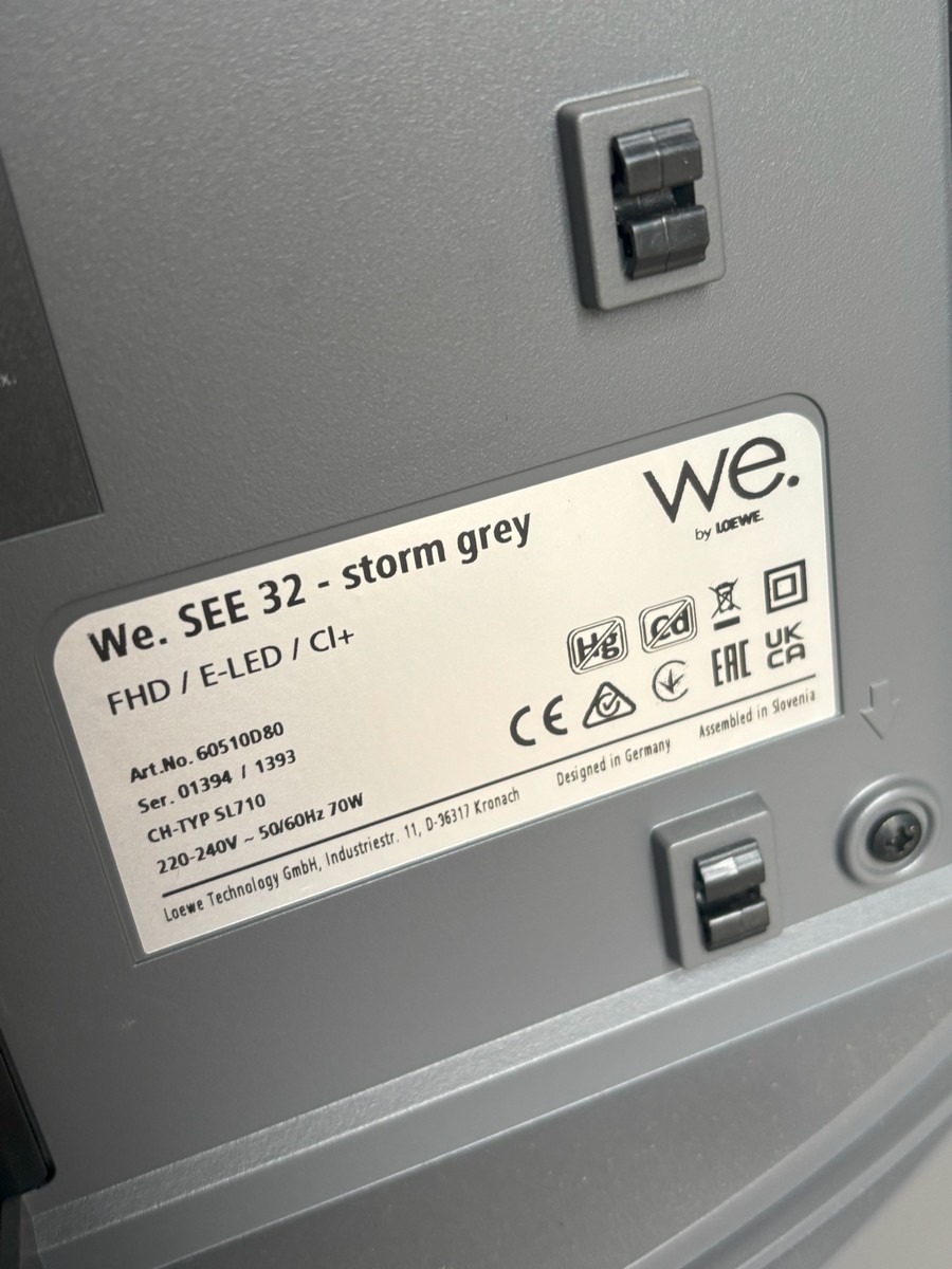 Loewe We. SEE 32" Smart-TV - Storm grey på fod. CH-TYP SL710. FHD / E-LED / CI+. Med fjernbetjening & diverse beslag, manualer, mm. Fra dødsbo