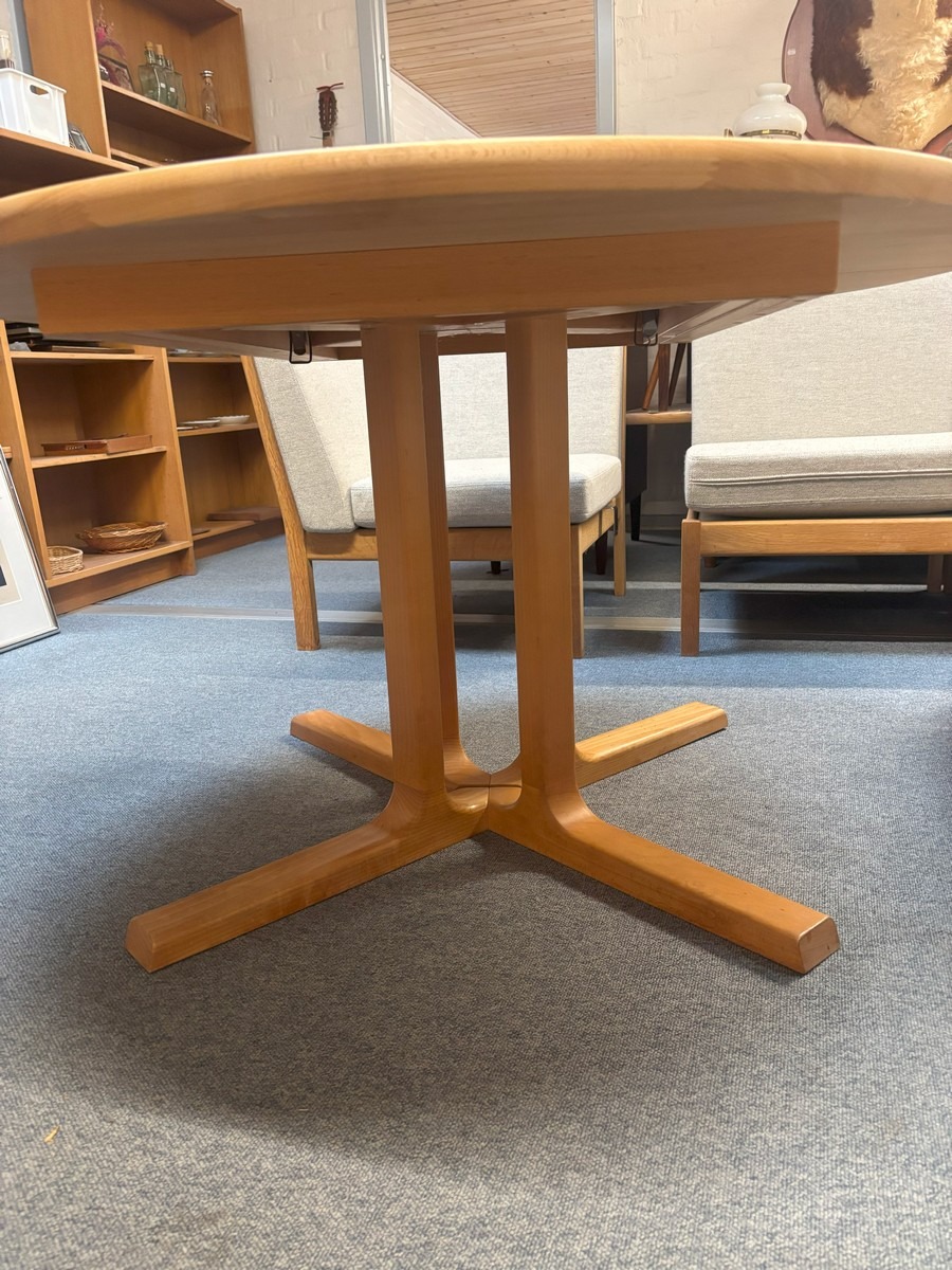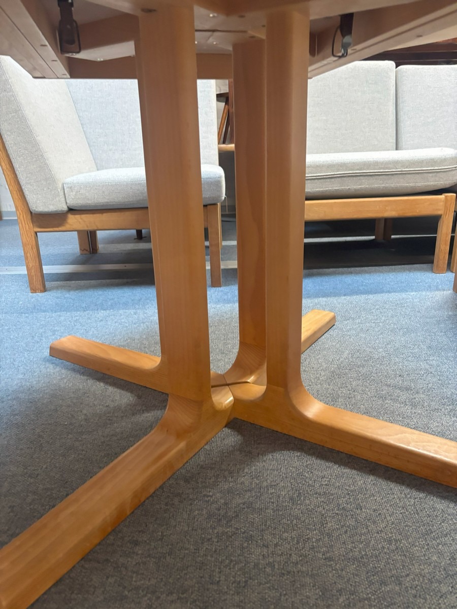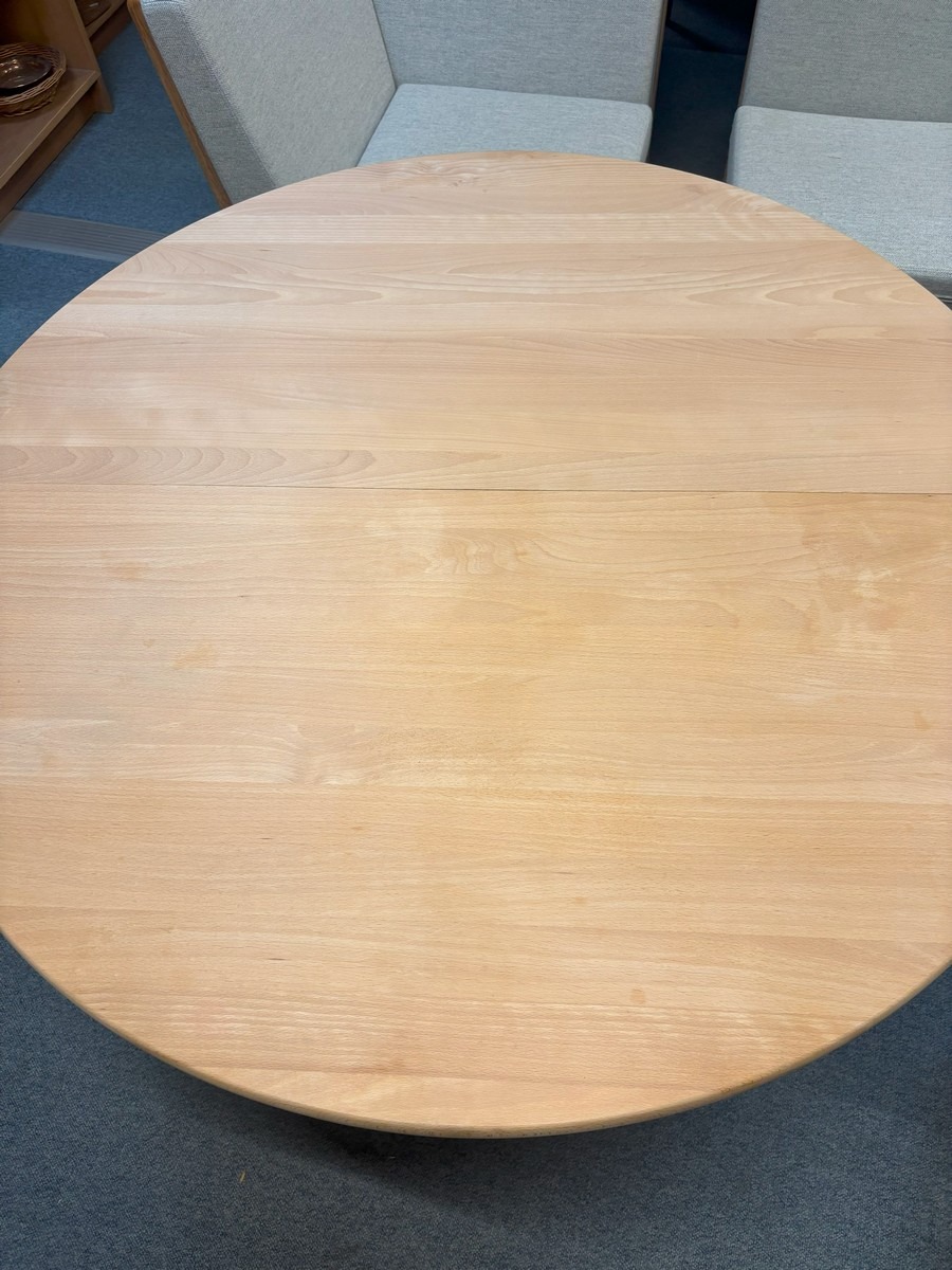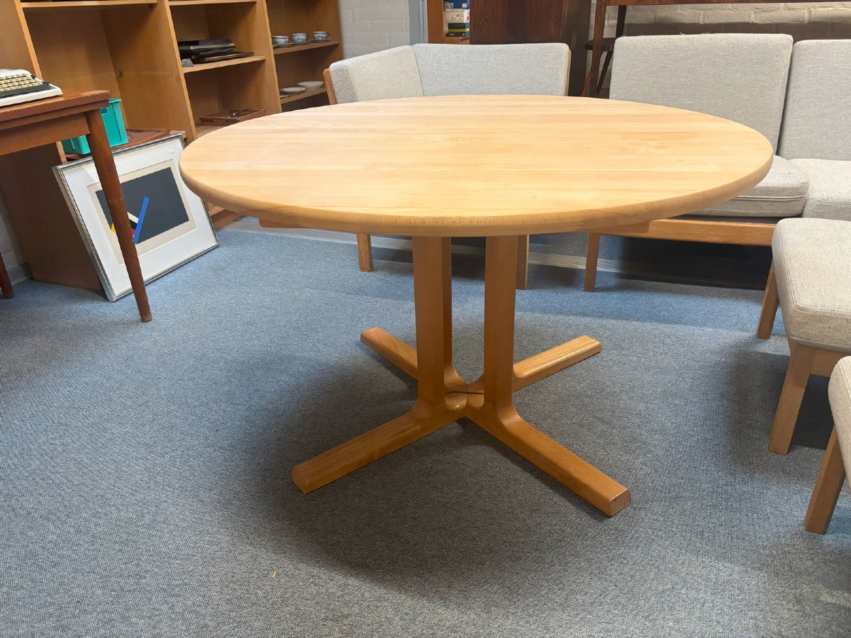 Stort flot rundt spisebord. Ø: ca. 110 cm. H: 72 cm. Fra dødsbo, med alm. brugsspor.