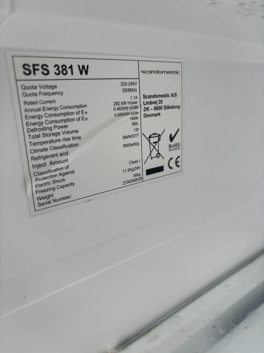 Scandomestic fryseskab, SFS 381. Købt i 2020 for 7500kr. Fremstår i pæn stand. Fra dødsbo