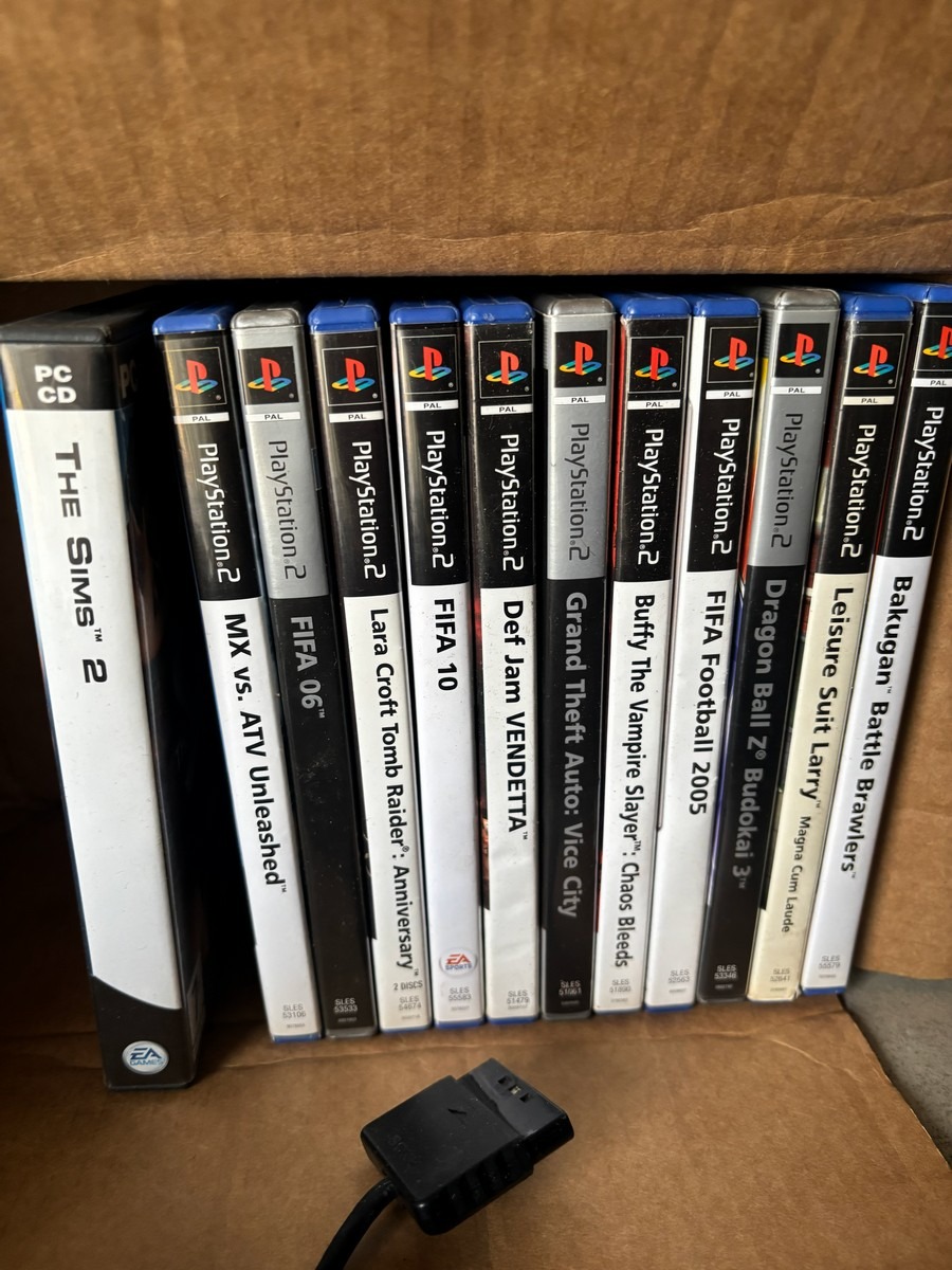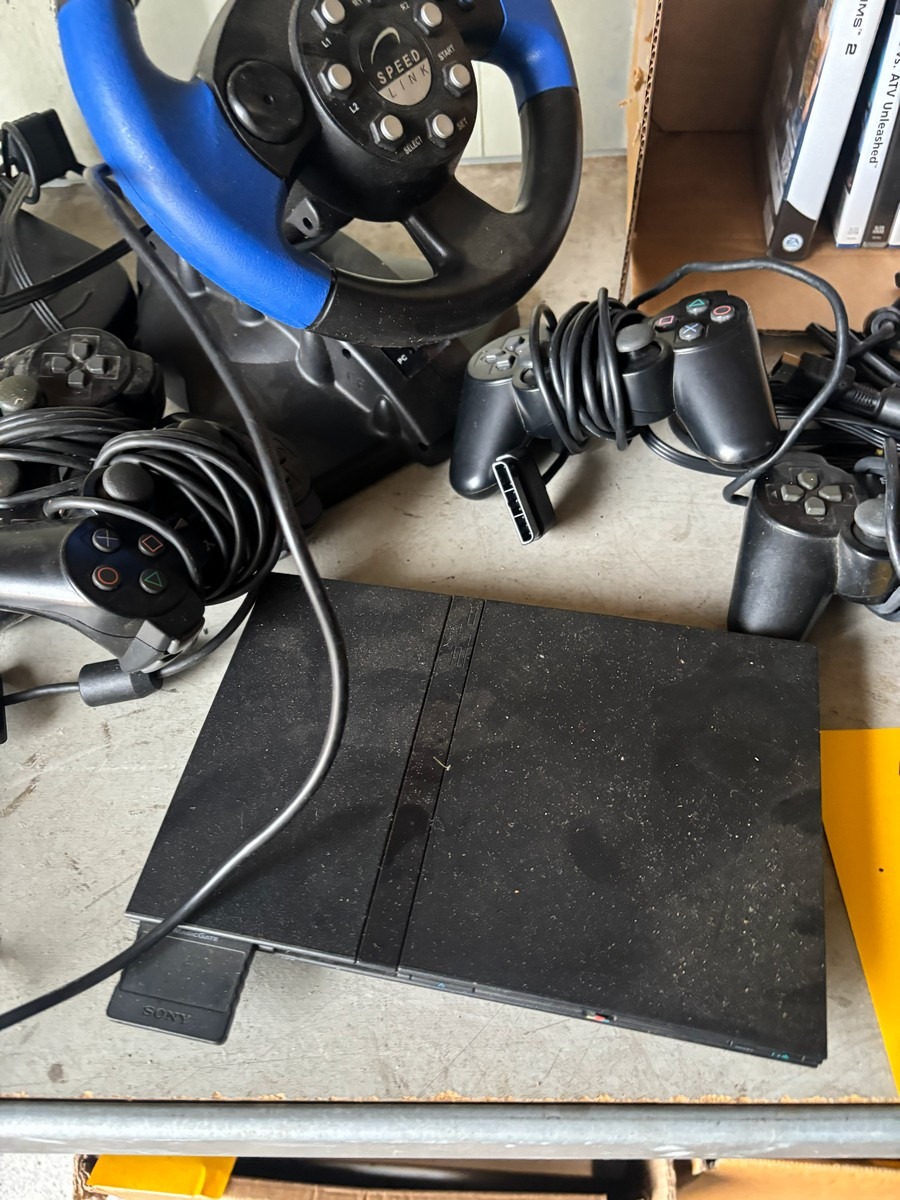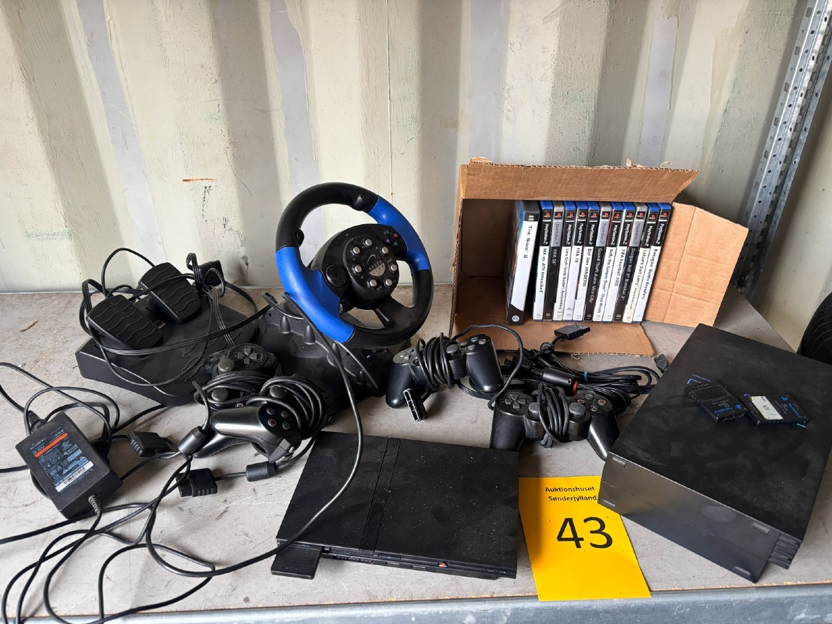 2 stk. PS2, diverse spil, mm. Mange dele. Ikke testet. Fra dødsbo