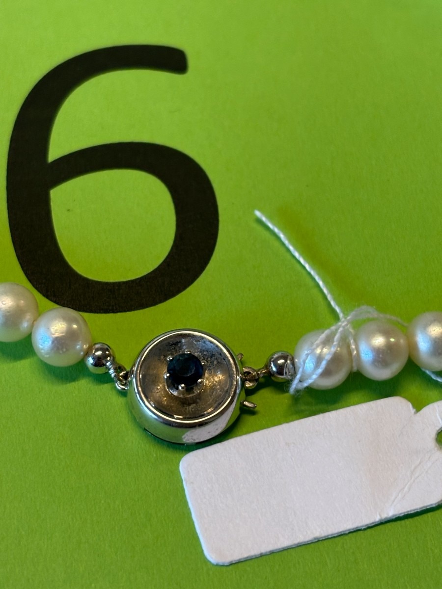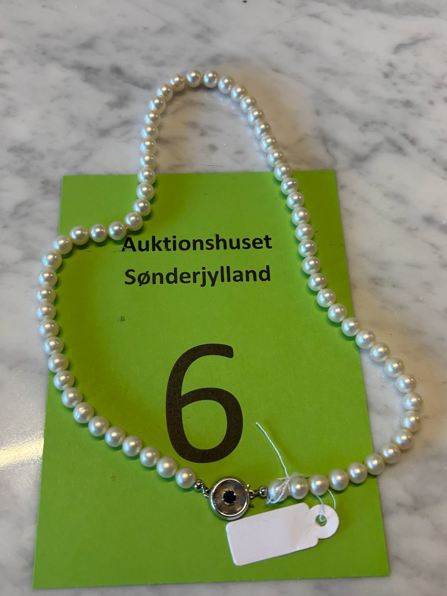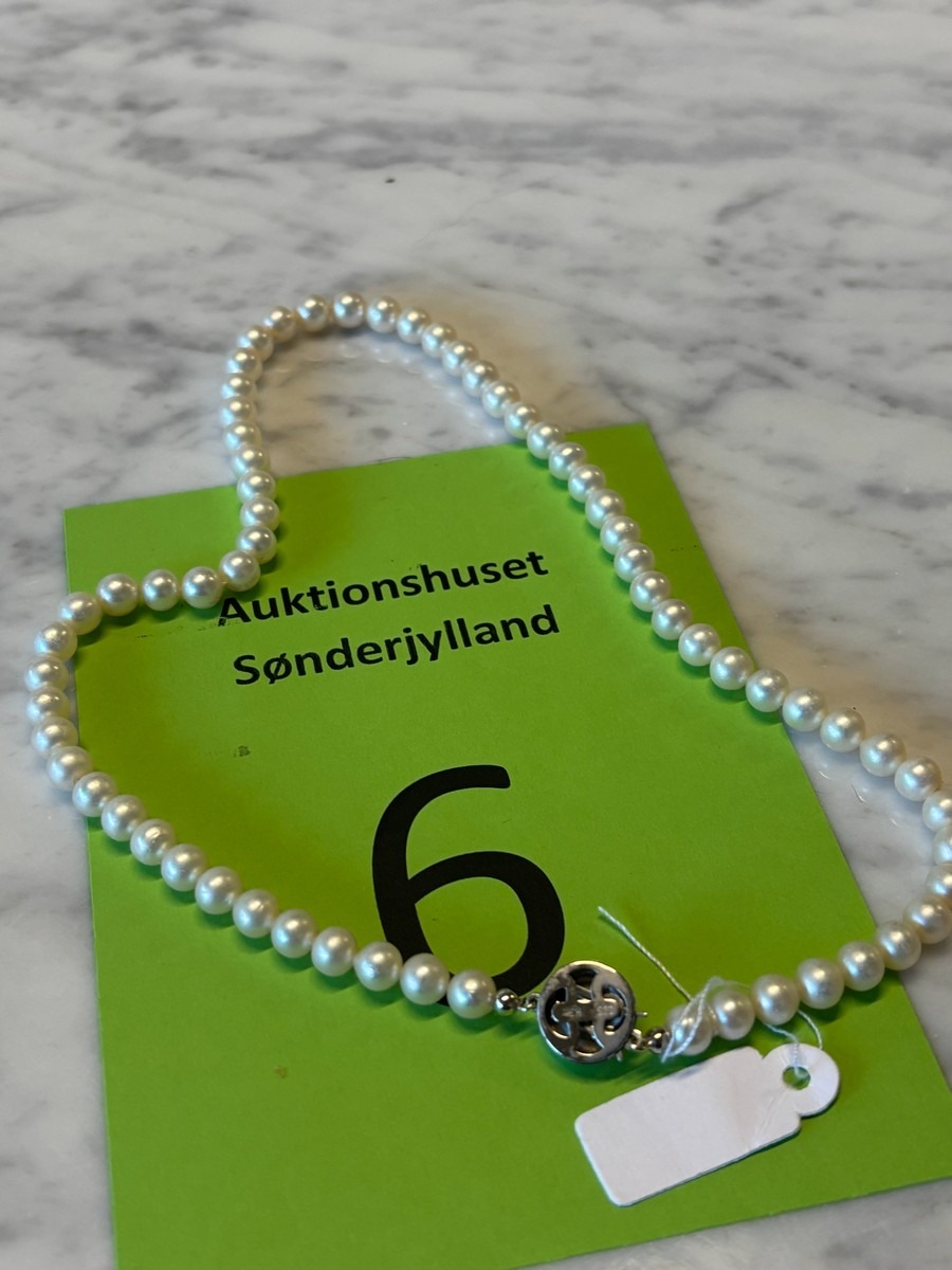 Perlekæde med 14 karats guldlås. Stemplet 585. Fra dødsbo