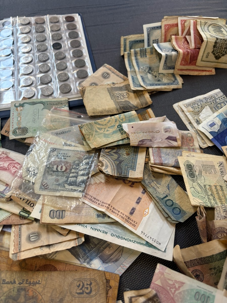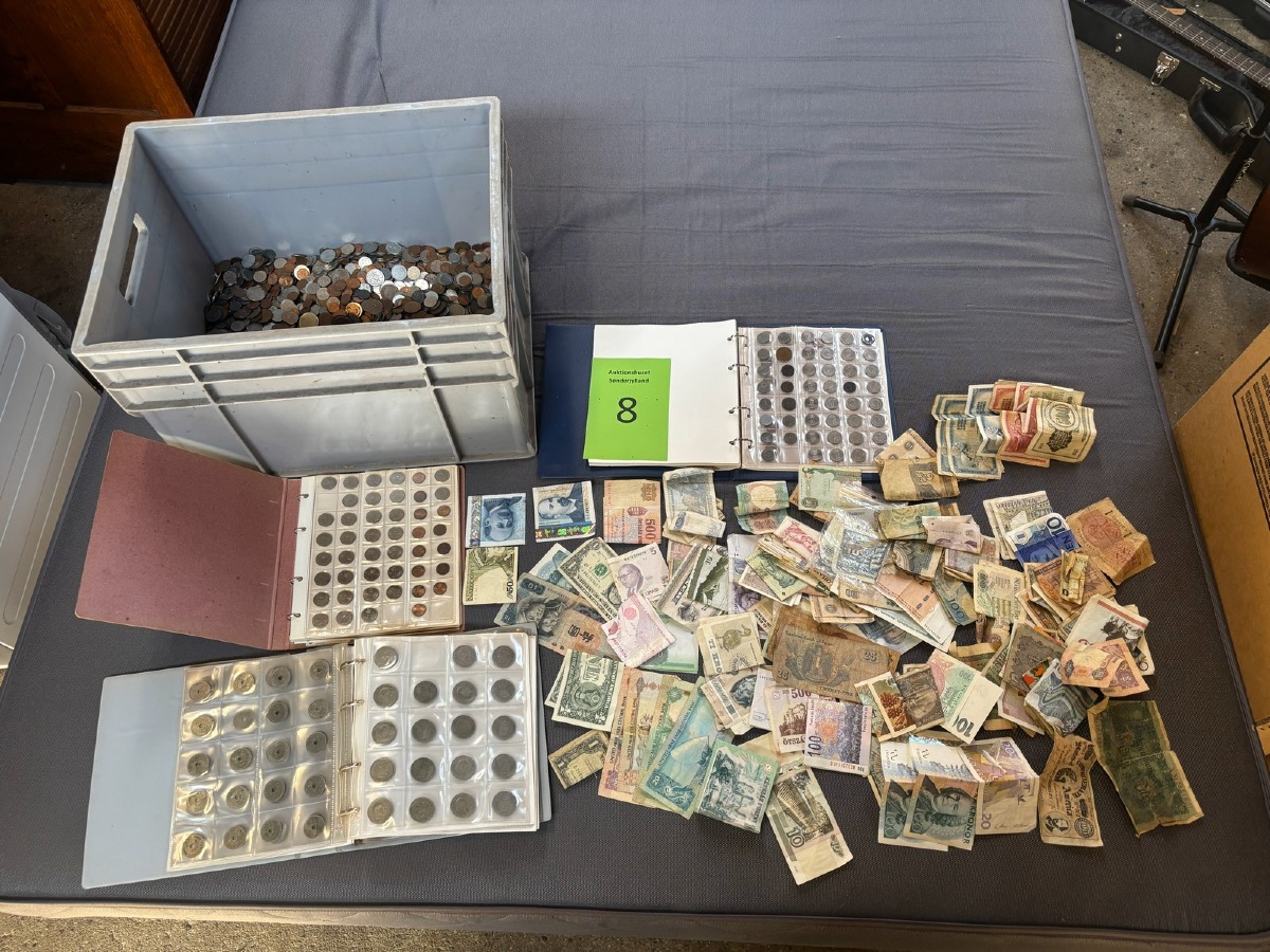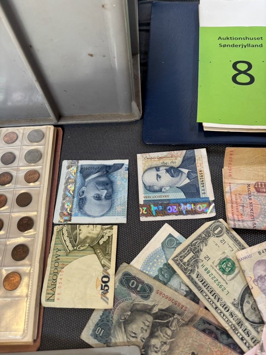 Stort parti mønter & udenlandske pengesedler. Forskellige lande og stand. Fra dødsbo