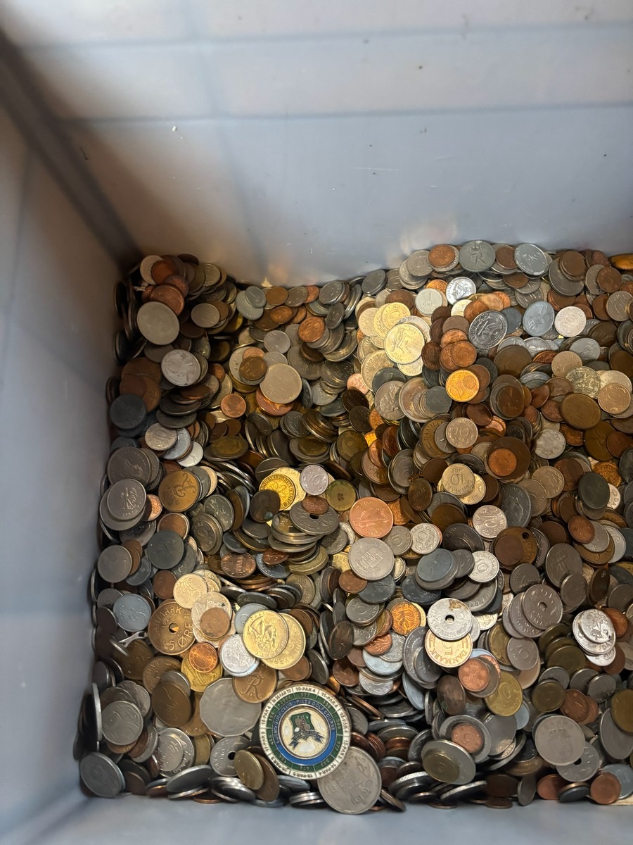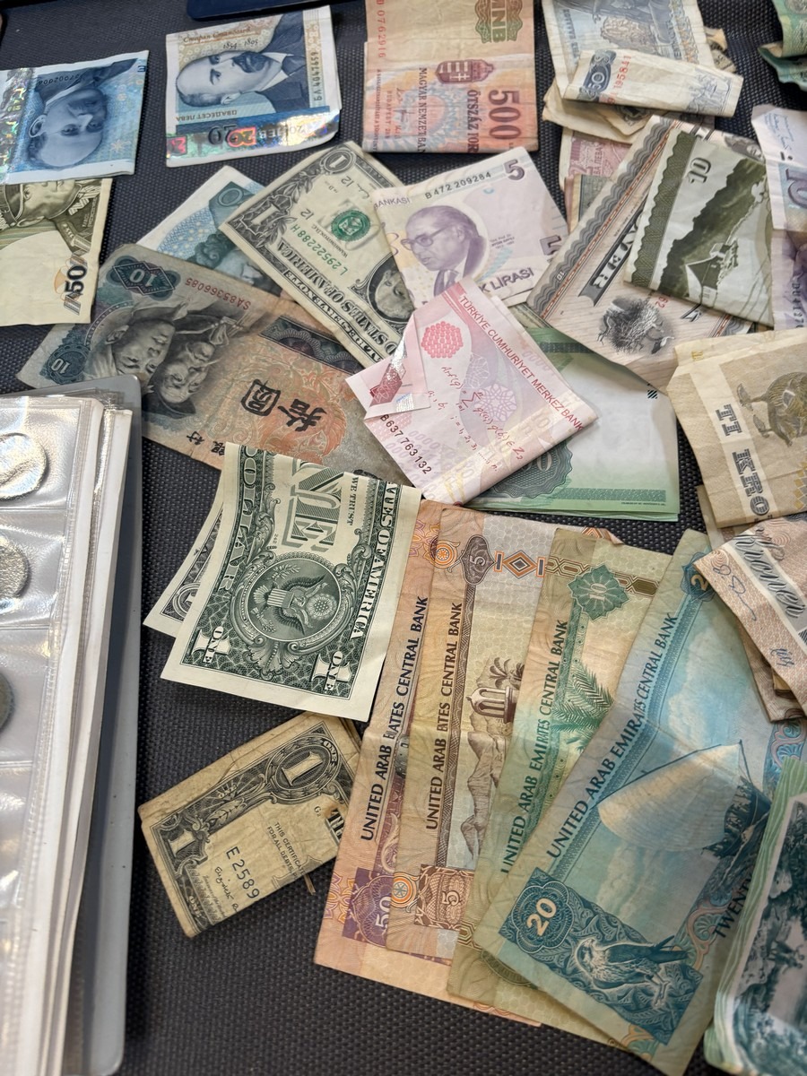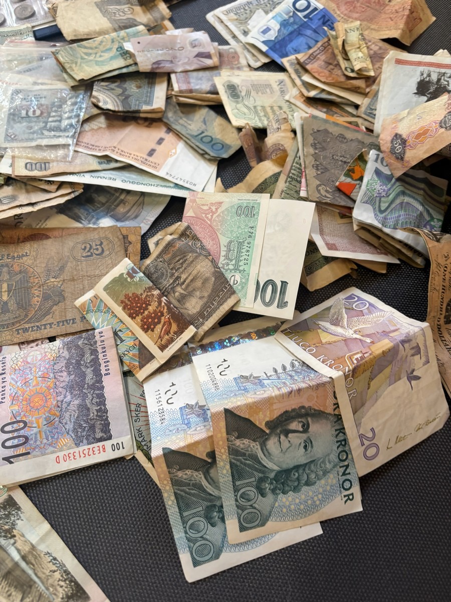 Stort parti mønter & udenlandske pengesedler. Forskellige lande og stand. Fra dødsbo