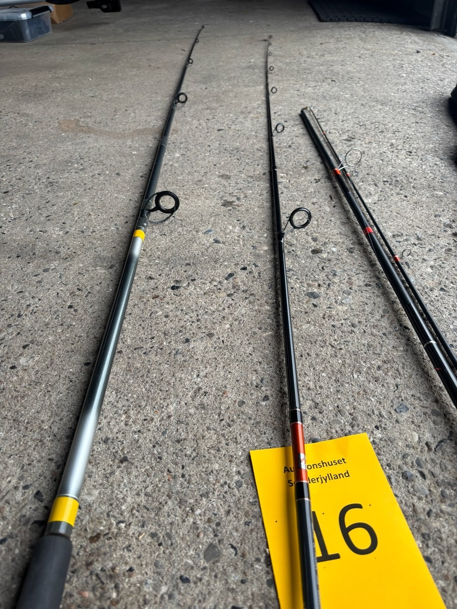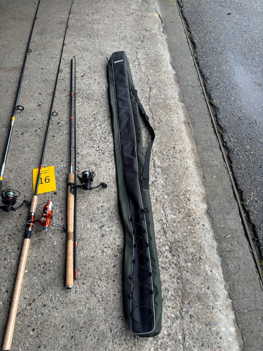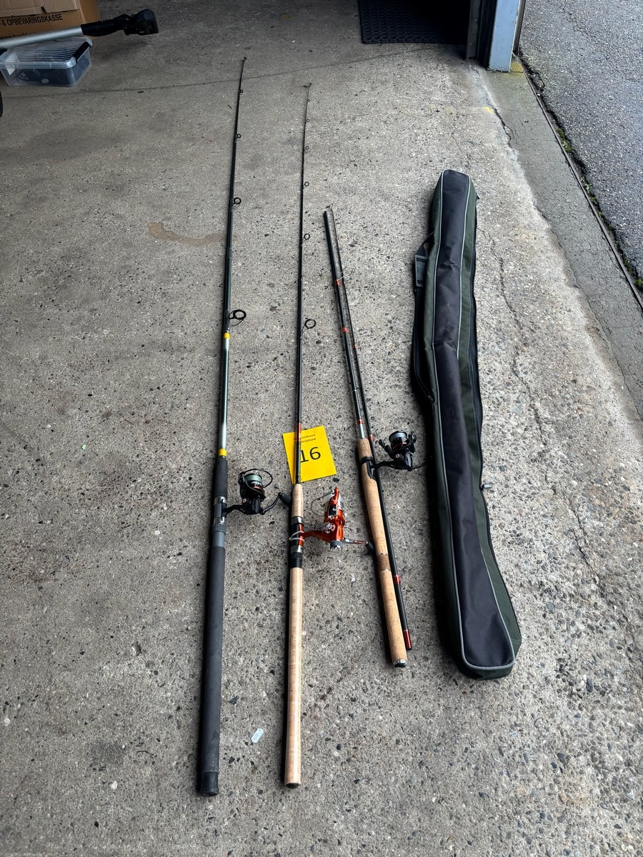 3 stk. fiskestænger & 1 fiskestang taske. Fra dødsbo