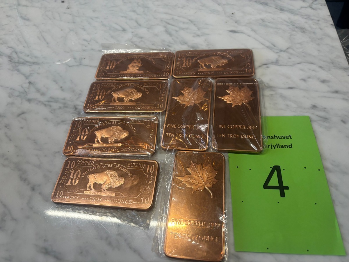 8 stk. 10 ounces fine copper. 999. Fra dødsbo