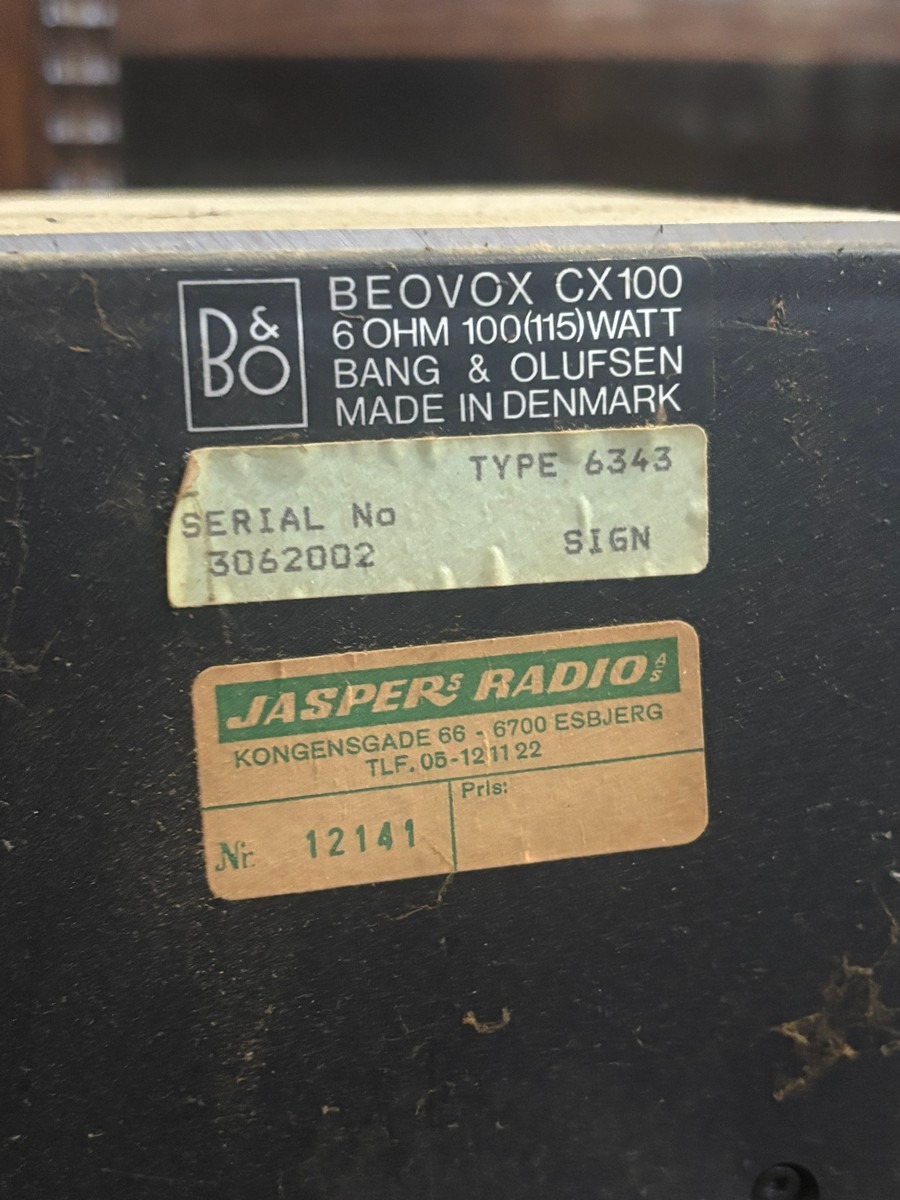 B&O Beomaster 3000, samt 2 stk. BEOVOX CX100. Fra dødsbo