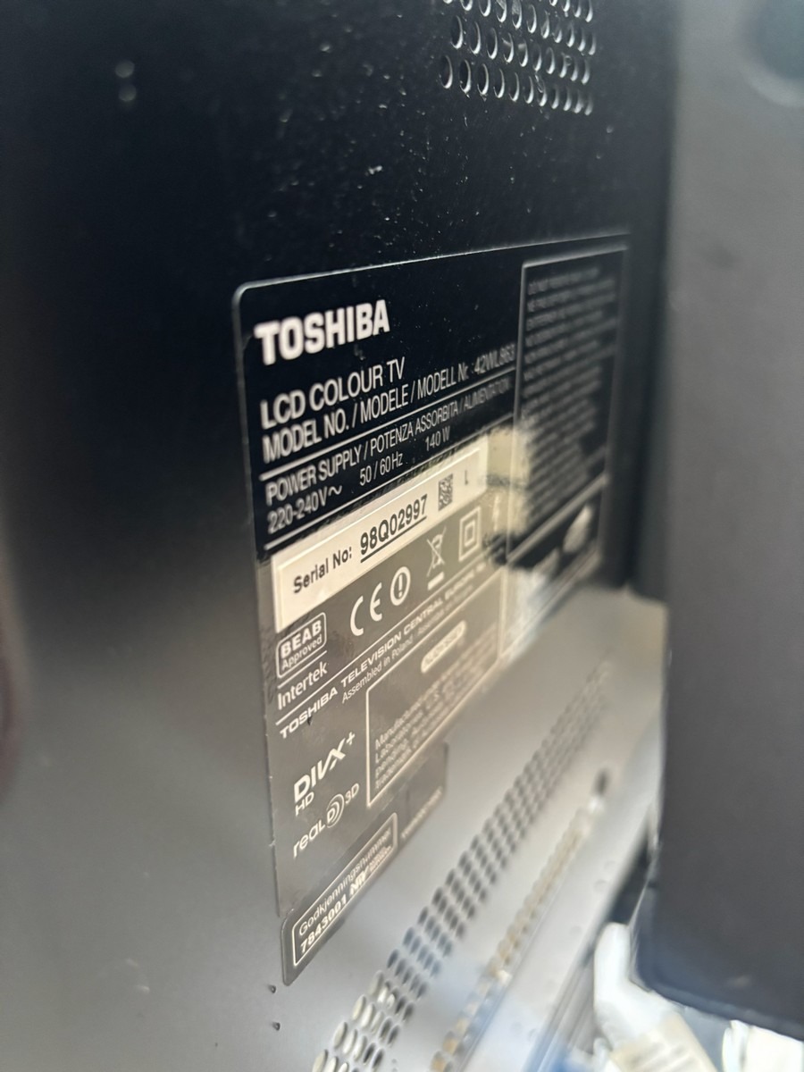 Toshiba 42 tommer tv på stativ med samsung samsung HW-D450. Fra dødsbo