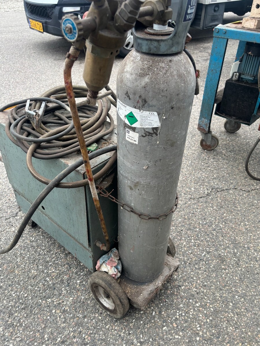 CO2 svejseanlæg på vogn med flaske, slanger og brænder