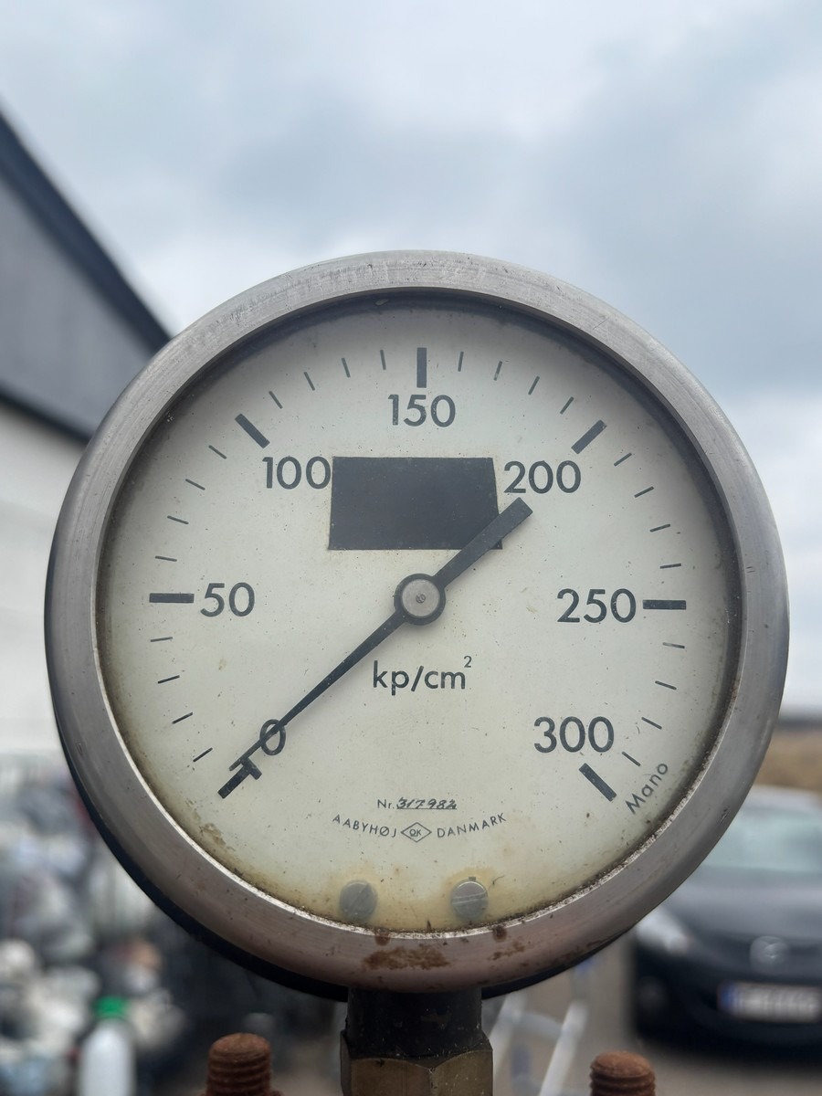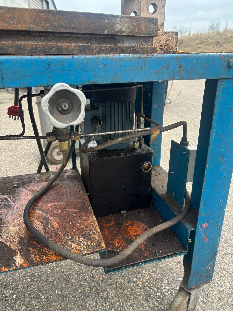 Hydraulisk presse på vogn med manometer og pumpeenhed