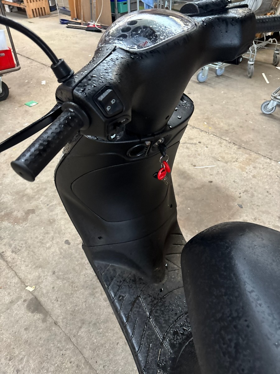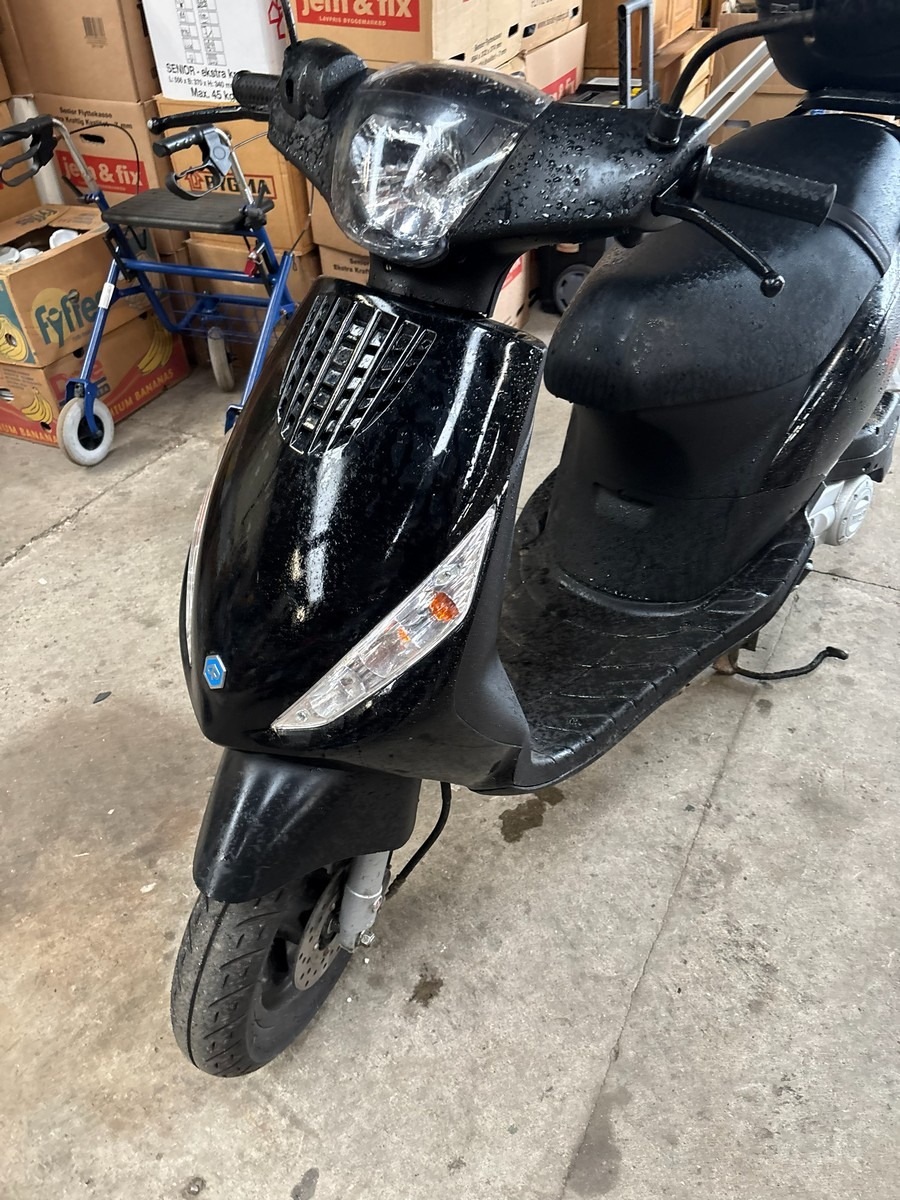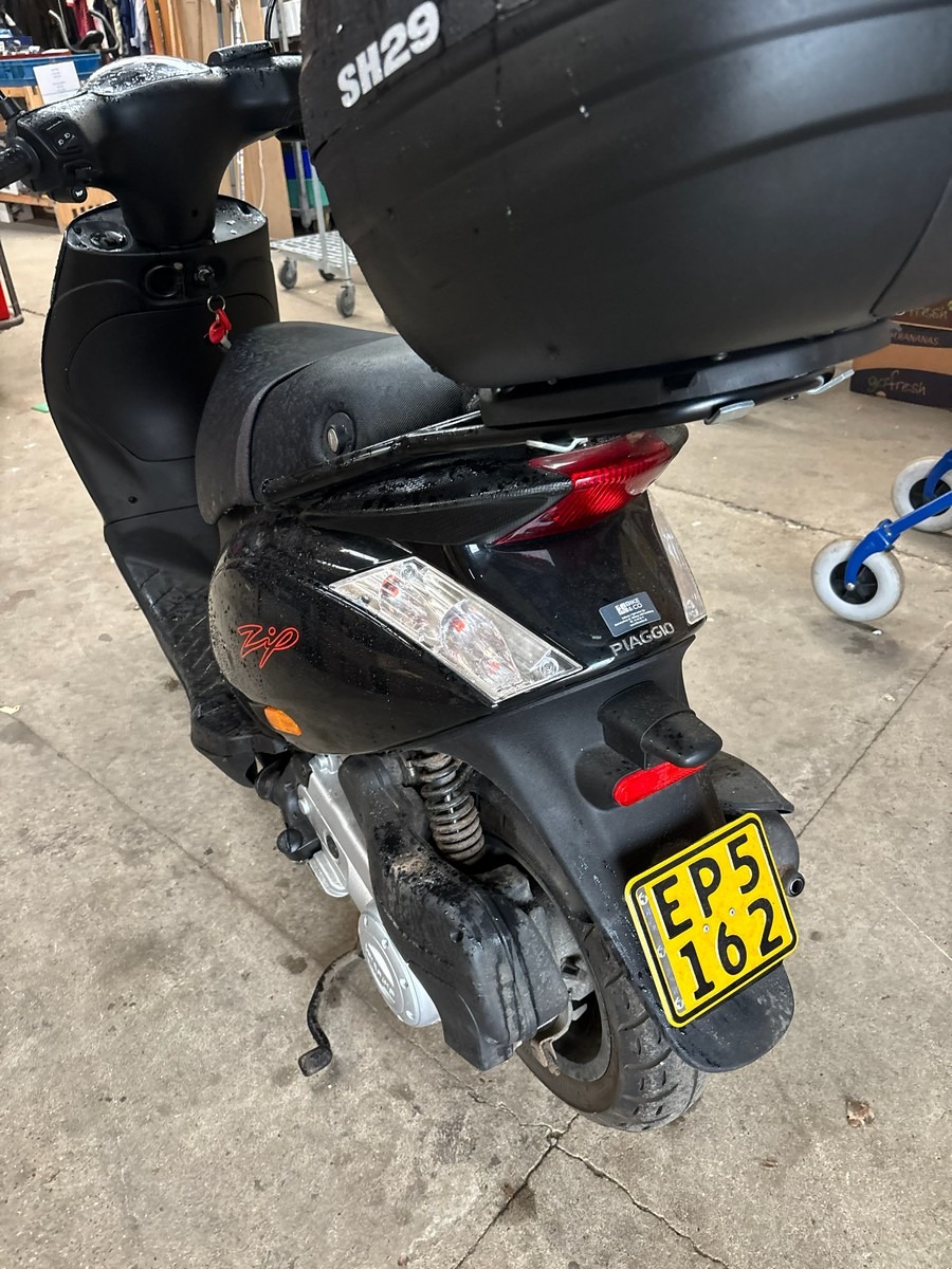 Piaggio Zip 50 E4 med topboks. Km: 4918. Starter og kører. Med Regi. Skal omregistreres ved afhentning. Fra dødsbo