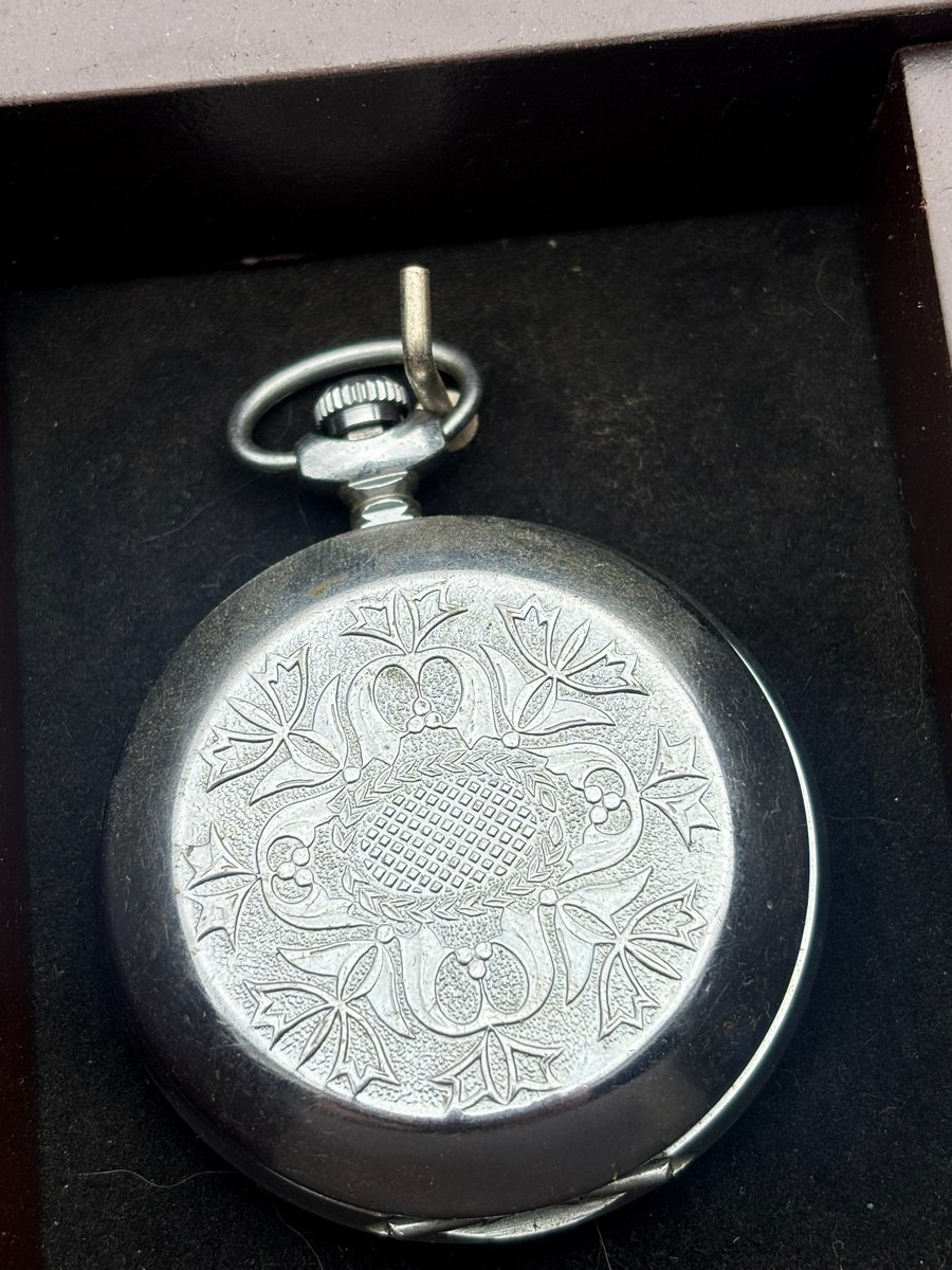 Samling af 19lommeure i 2 displaykasser. Forskellige modeller og motiver. Brugt med brugsspor. Fra dødsbo.
